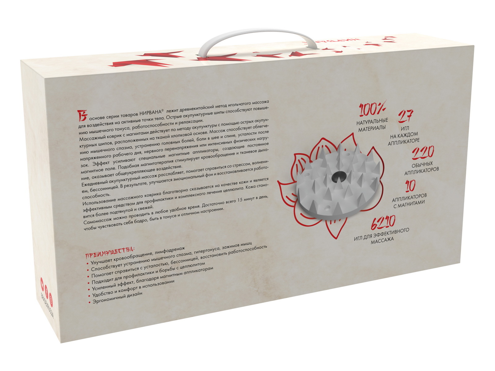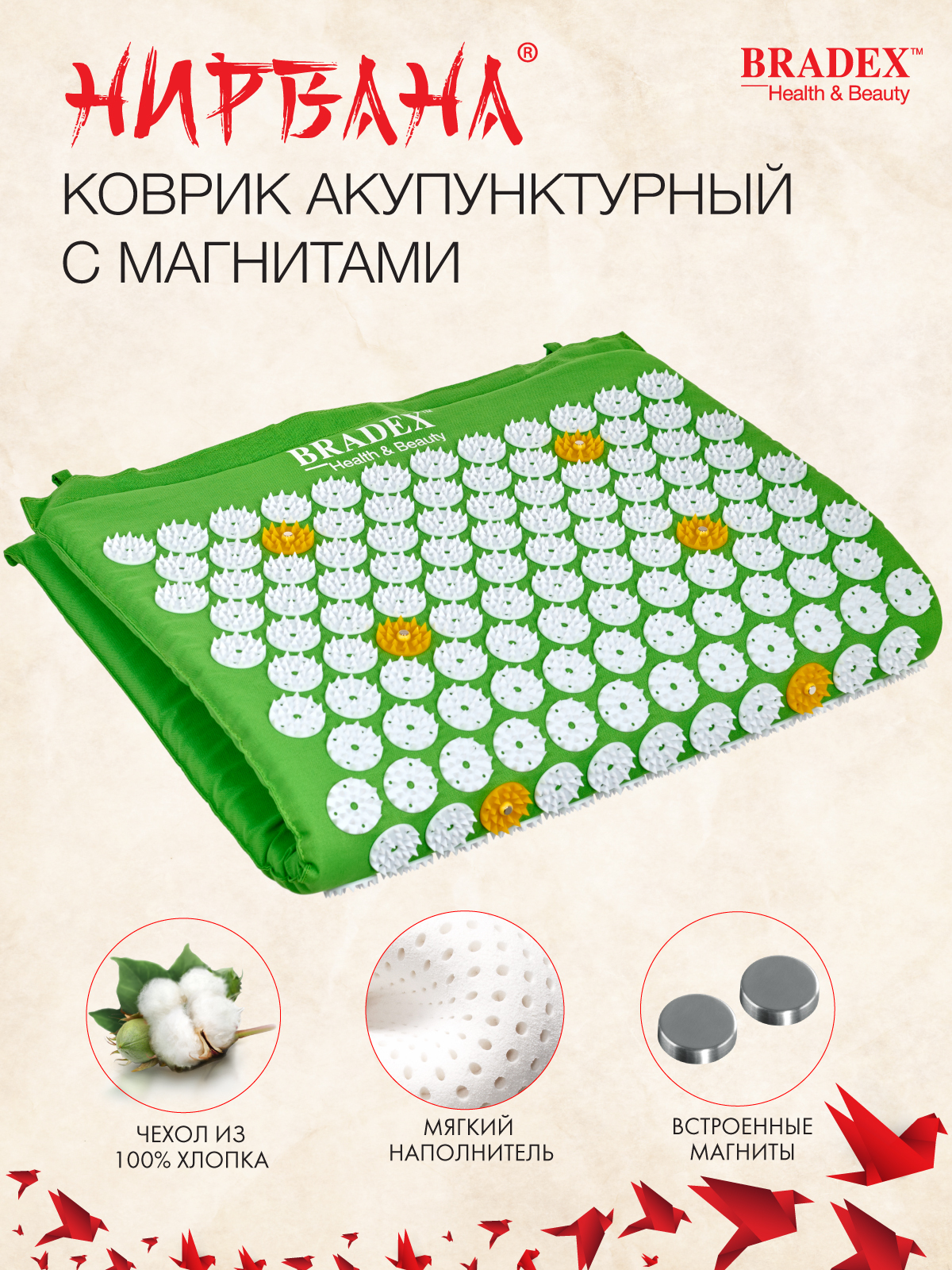 Массажный акупунктурный игольчатый коврик с магнитами Нирвана аппликатор Кузнецова Bradex, 10 магнитов, 65х40х2 см.