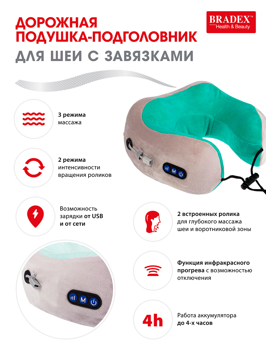 Bradex Массажная подушка с подогревом/ Массажер с термороликами для дома и авто / Массажер для спины, шеи и плеч. Уцененный товар