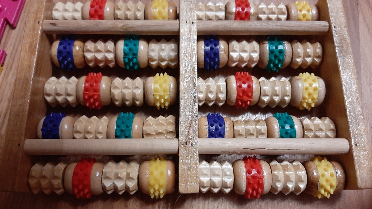 Bradex Массажер для стоп деревянный с резиновыми роликами / Массажер для ног роликовый / Массажер зубчатый