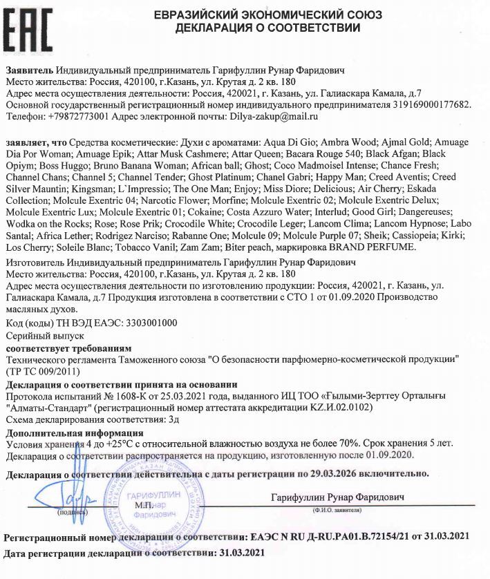 BRAND Perfume Black Afgan Духи-масло 3 мл
