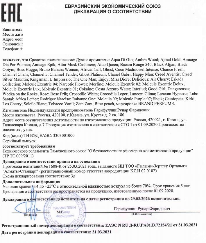 BRAND Perfume Black Afgan Духи-масло 3 мл