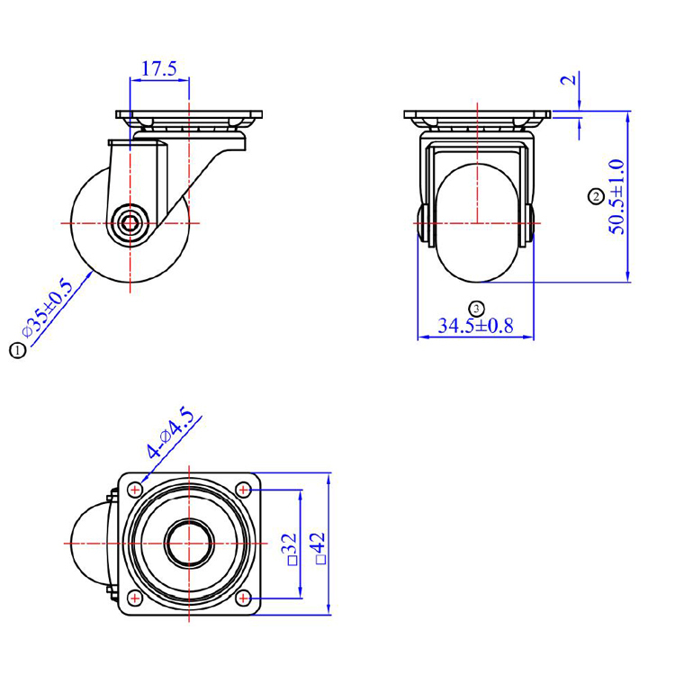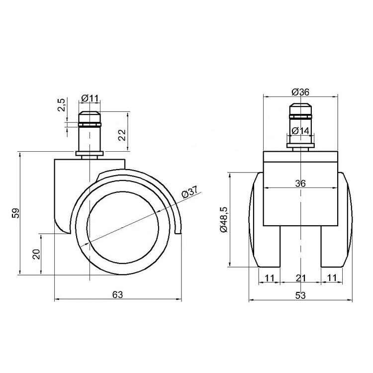 Комплект 2 колес поворотных 50 мм на штыре М8, обрезиненное белое