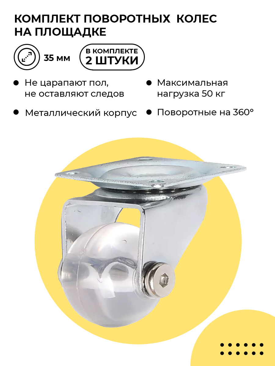 Комплект 2 колес Brante поворотных на площадке 35мм полупрозрачный полиуритан