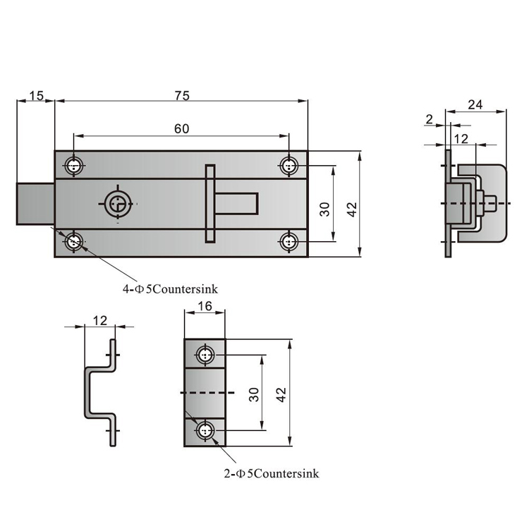 Комплект 2 петли секретерных L80 W30 хром 50141