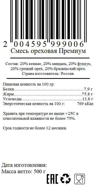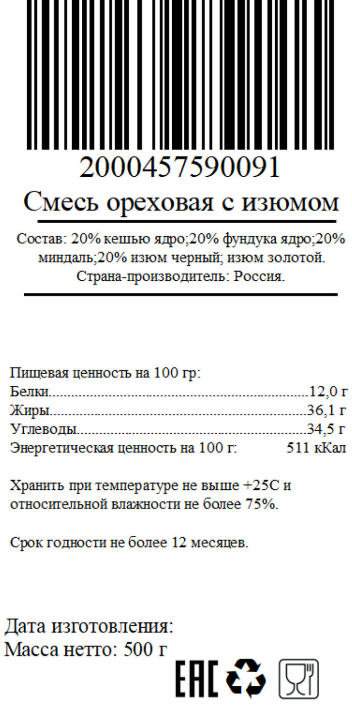 Смесь ореховая с изюмом Братья Ореховы, 500 г
