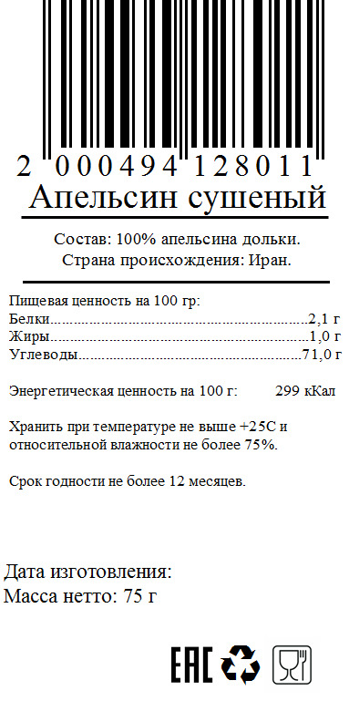 Апельсин сушеный чипсы Братья Ореховы, 75 г