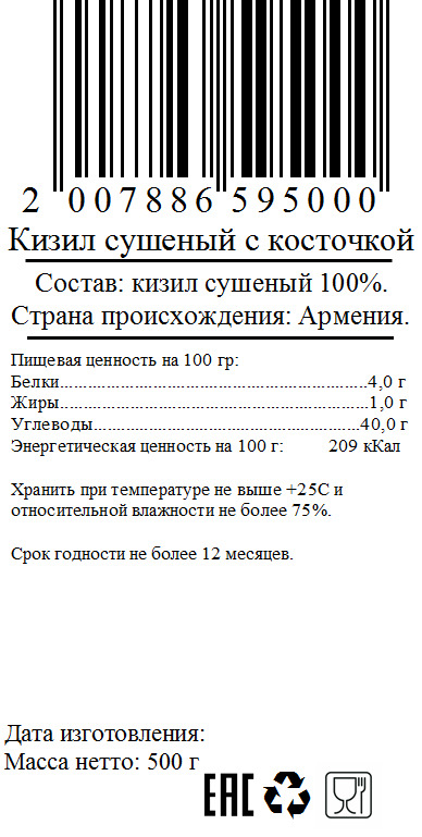 Кизил сушеный натуральный с косточкой Братья Ореховы, 500г