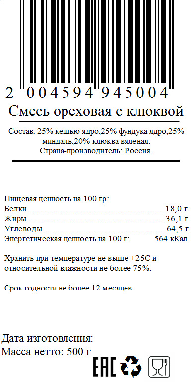 Смесь ореховая с клюквой Братья Ореховы, 500 г