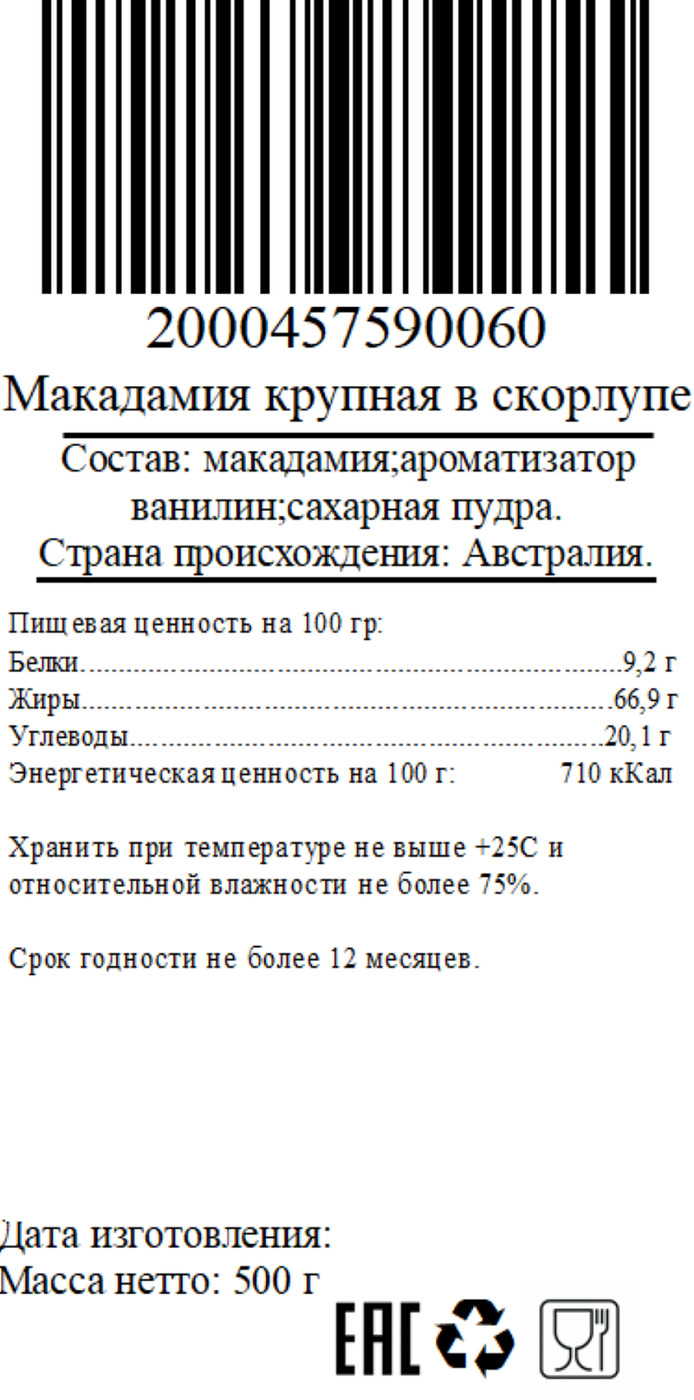 Макадамия в скорлупе Братья Ореховы, 500 г