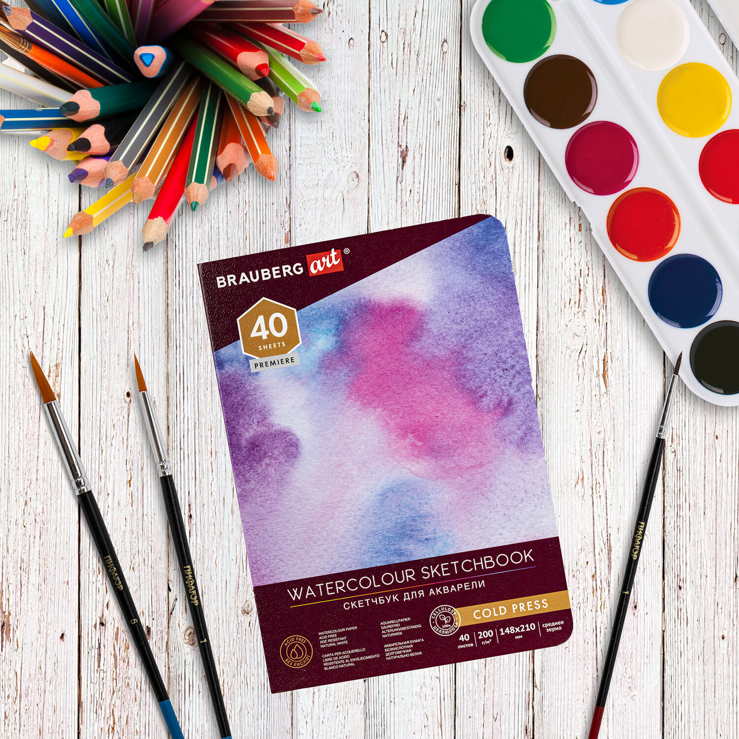 Скетчбук для акварели, 200 г/м2, 148 на 210 мм, среднее зерно, 40 л., книжный переплет, 113262