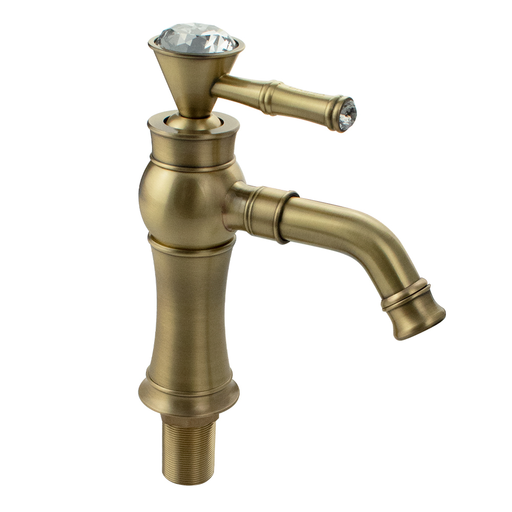 Смеситель шаровый для раковины, под БРОНЗУ , ручка с большим КРИСТАЛЛОМ