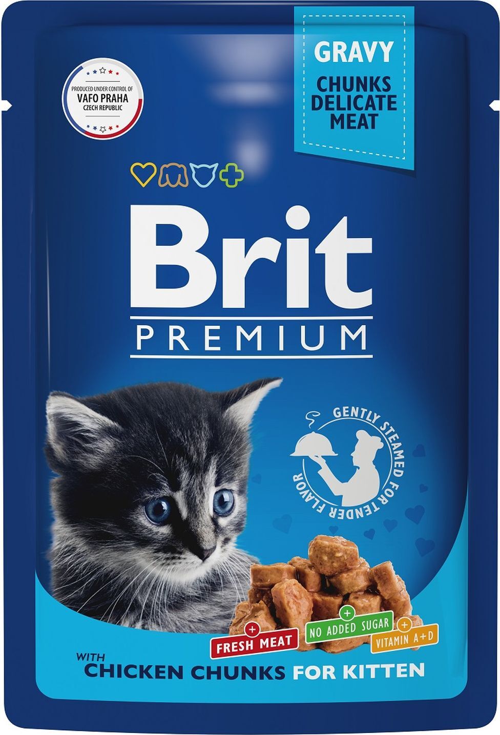 Влажный корм для котят Brit Premium, кусочки в соусе с курицей, 85 г