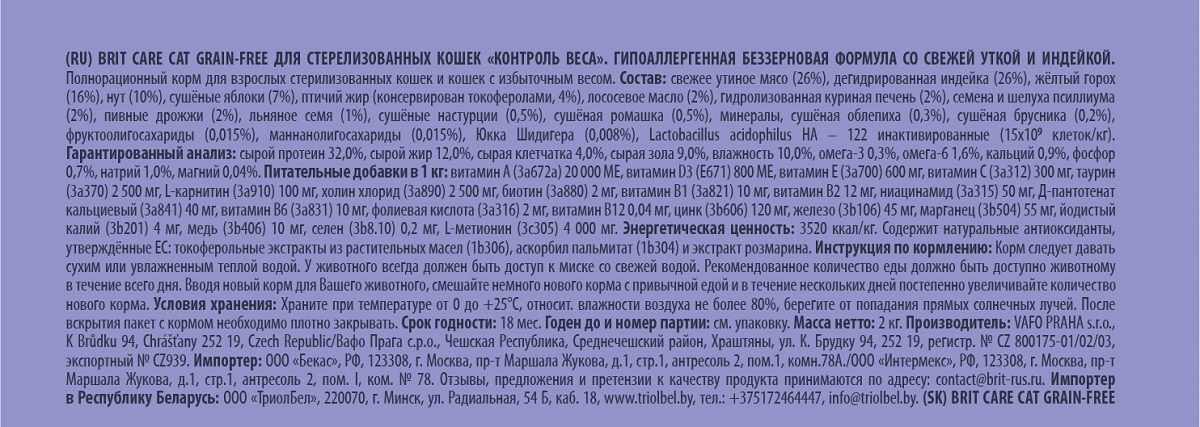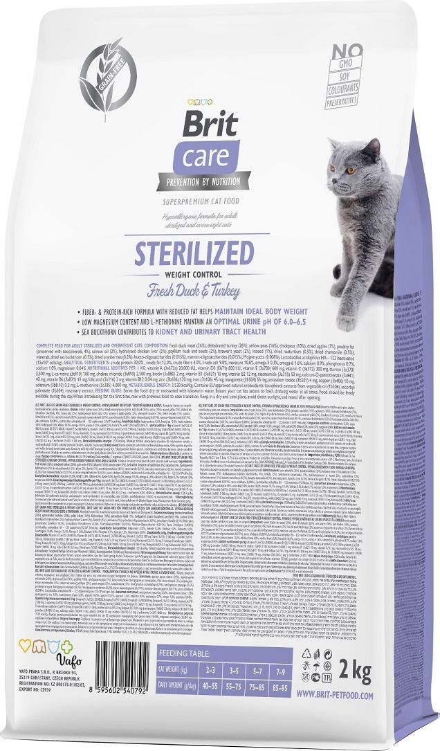 Корм сухой Brit Care Cat GF Sterilized Weight Control для стерилизованных кошек Контроль веса, 2 кг