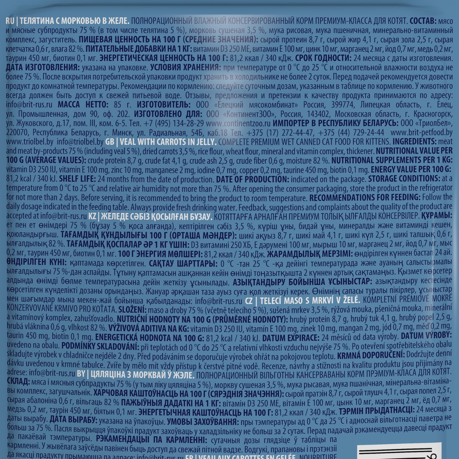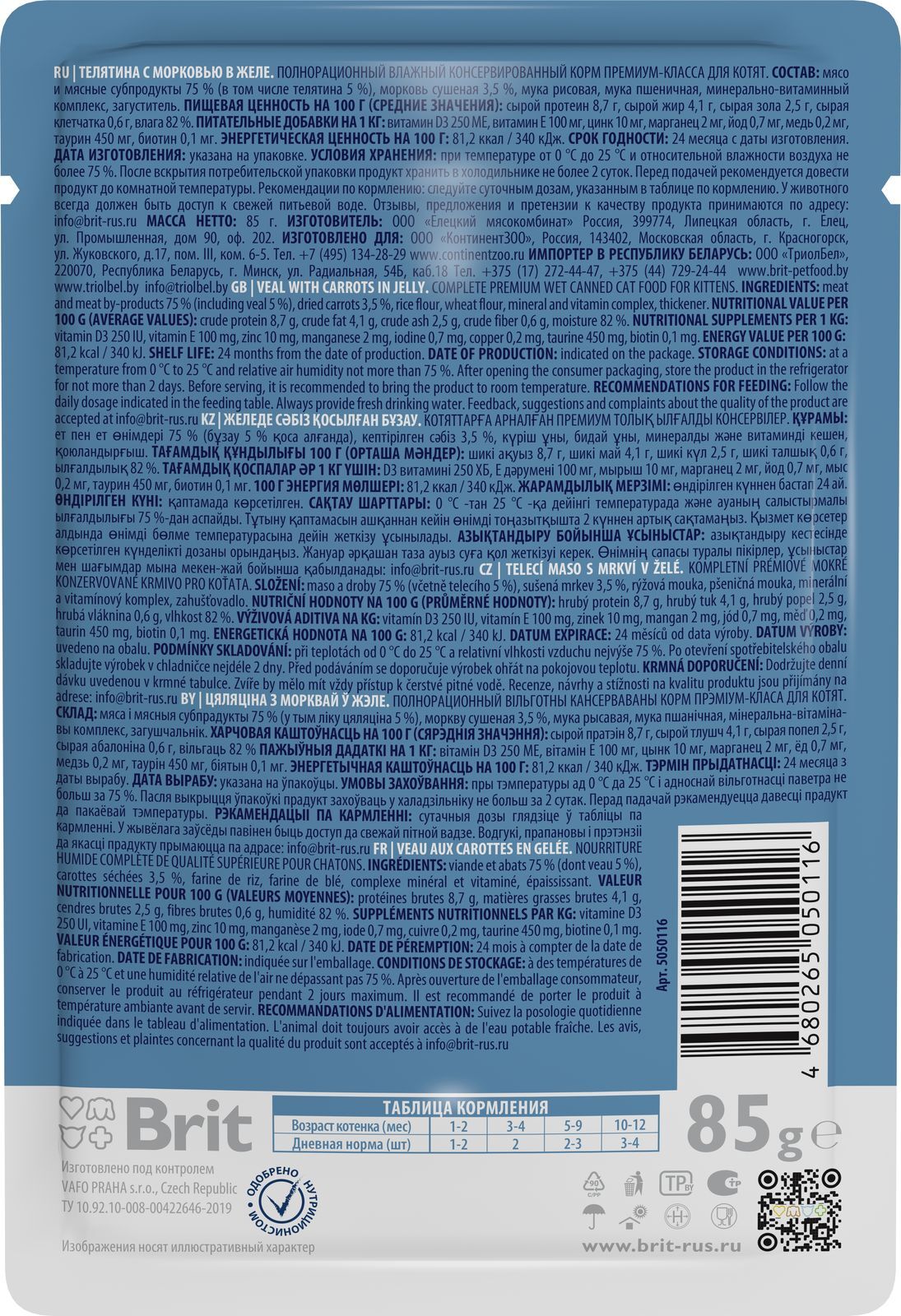 Корм влажный для котят Brit Premium, Телятина с Морковью в желе, 85 г х 14 шт