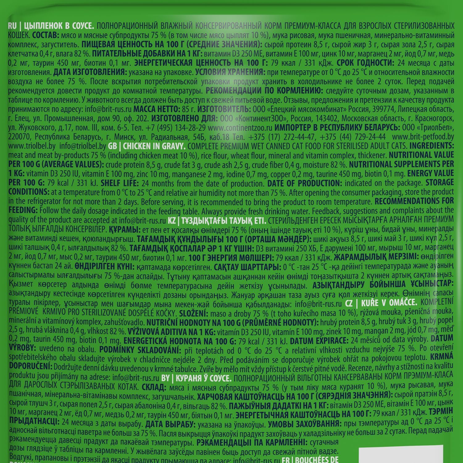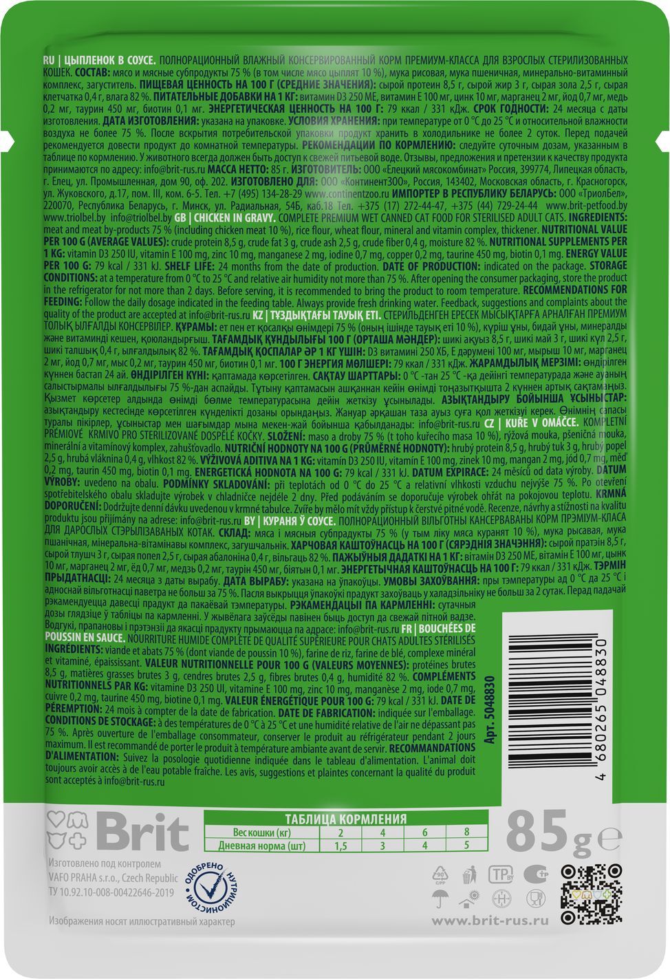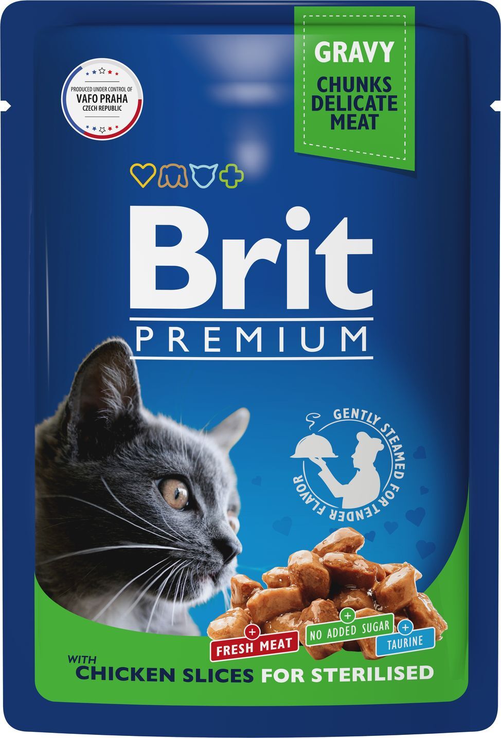 Корм для стерилизованных кошек Brit Premium беззерновой, с курицей 100 г (кусочки в соусе)