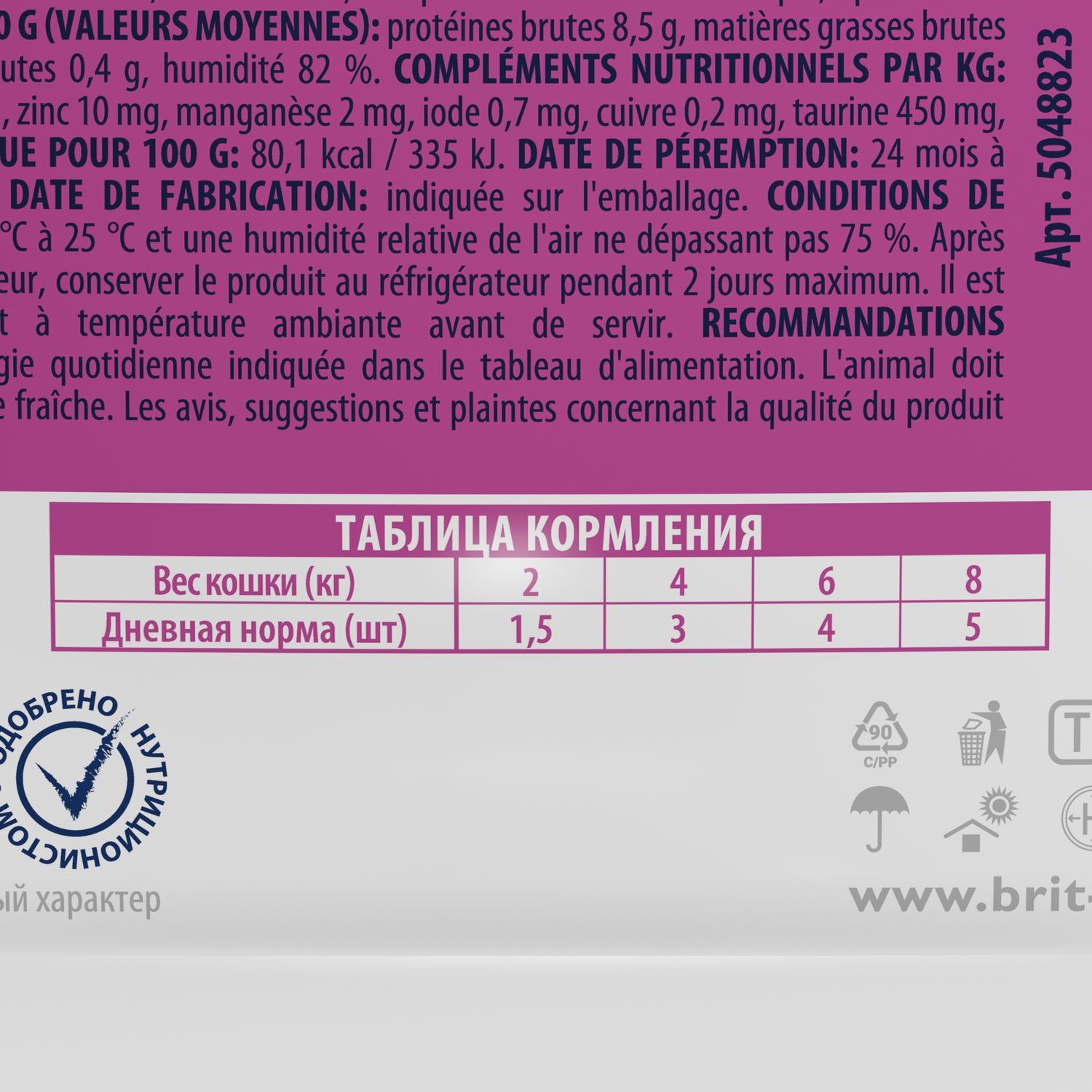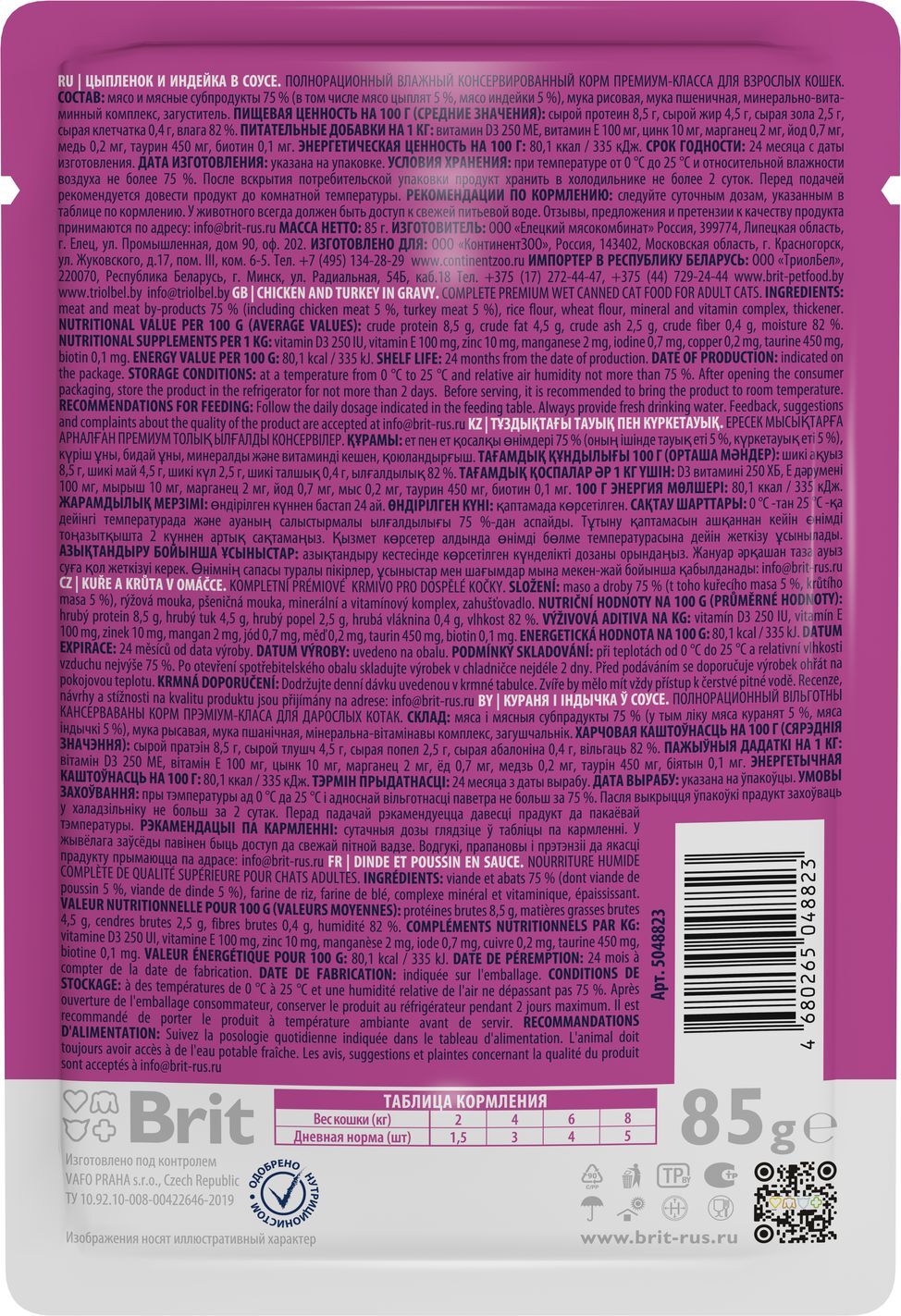 Корм для кошек Brit Premium беззерновой, с индейкой 85 г (кусочки в соусе)