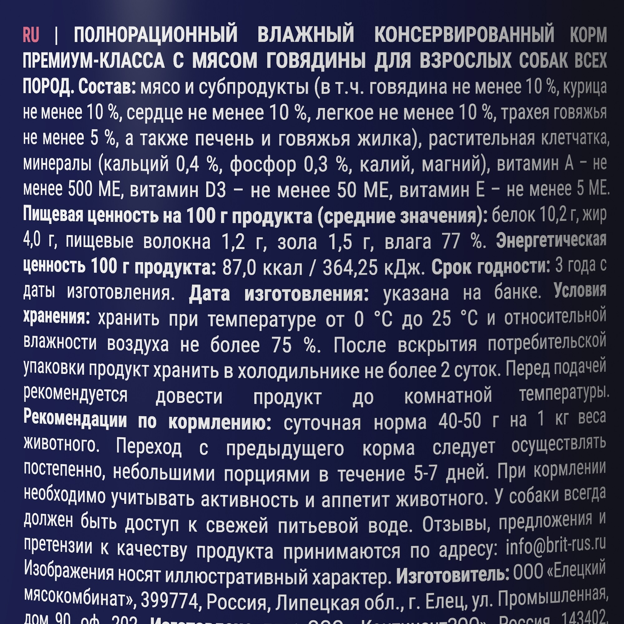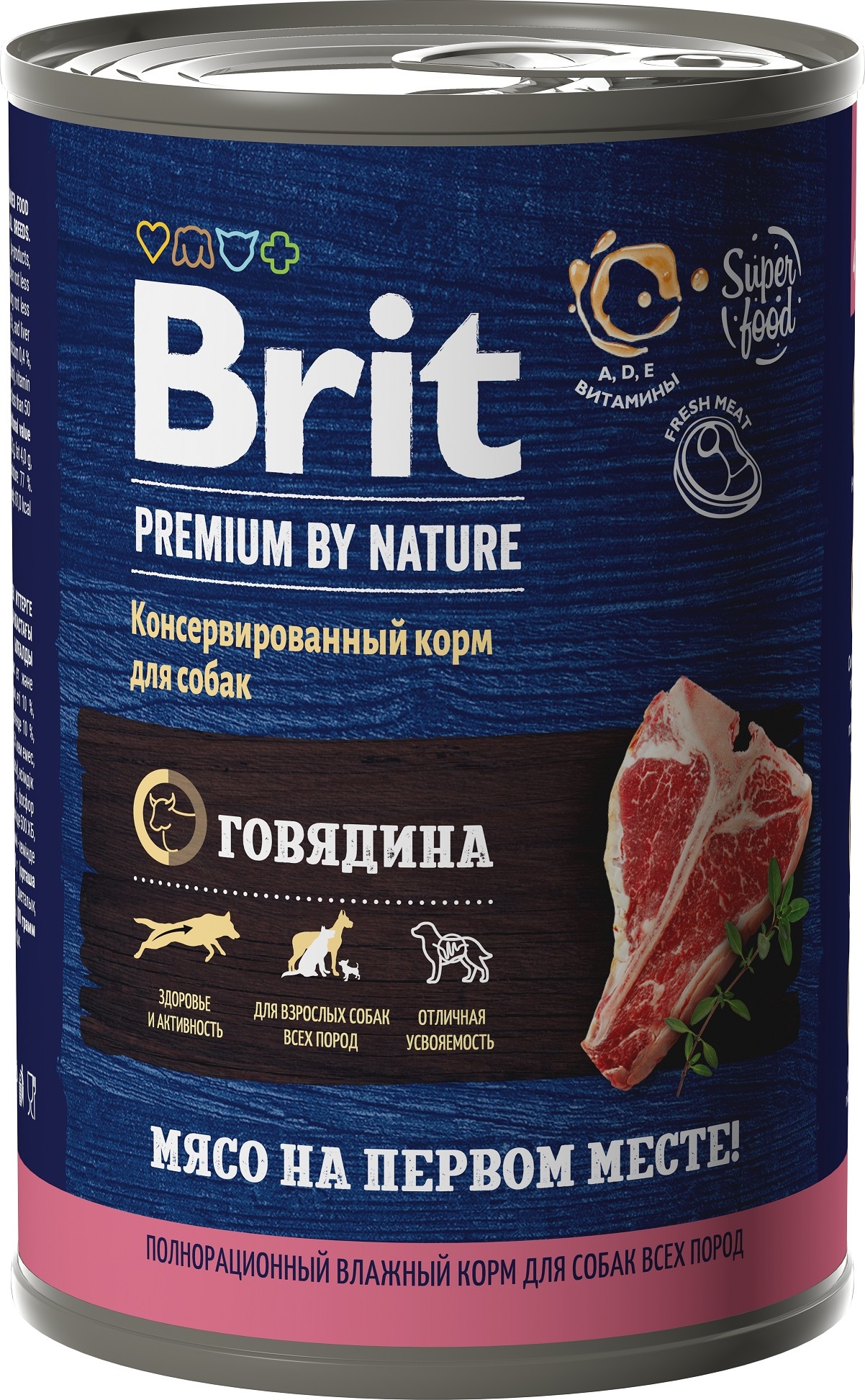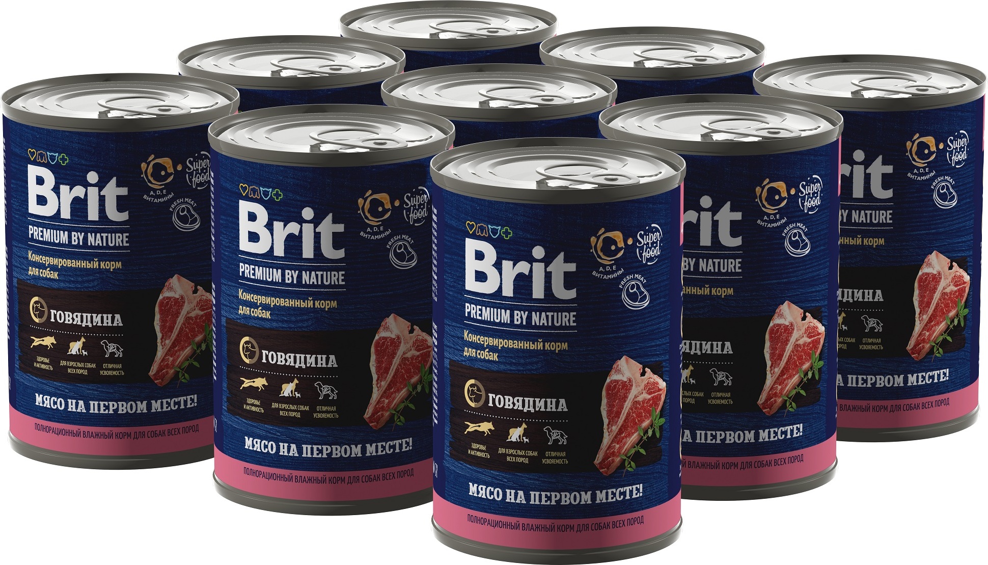 Консервы для собак Brit Premium by Nature, с говядиной, 410 г х 9 шт