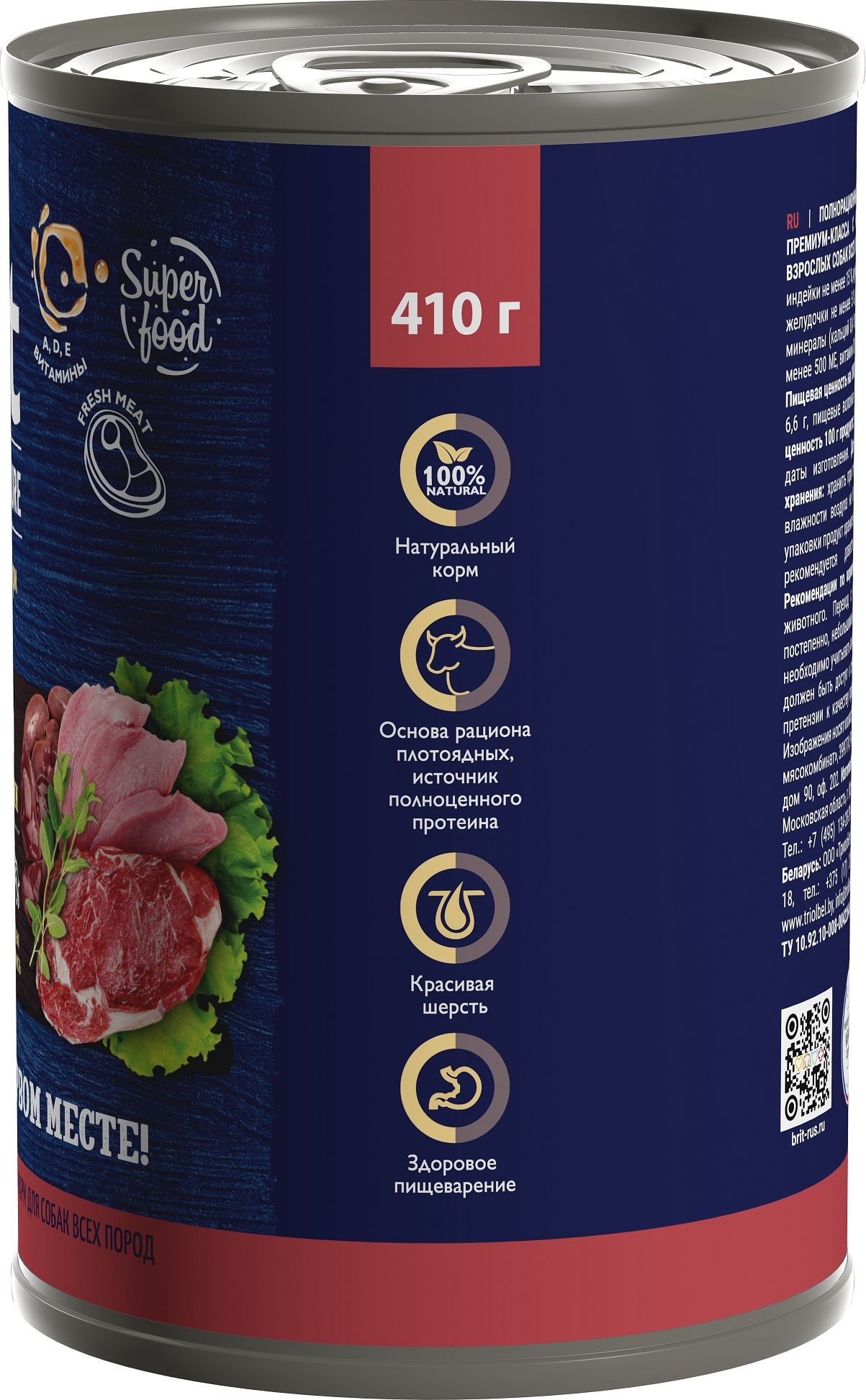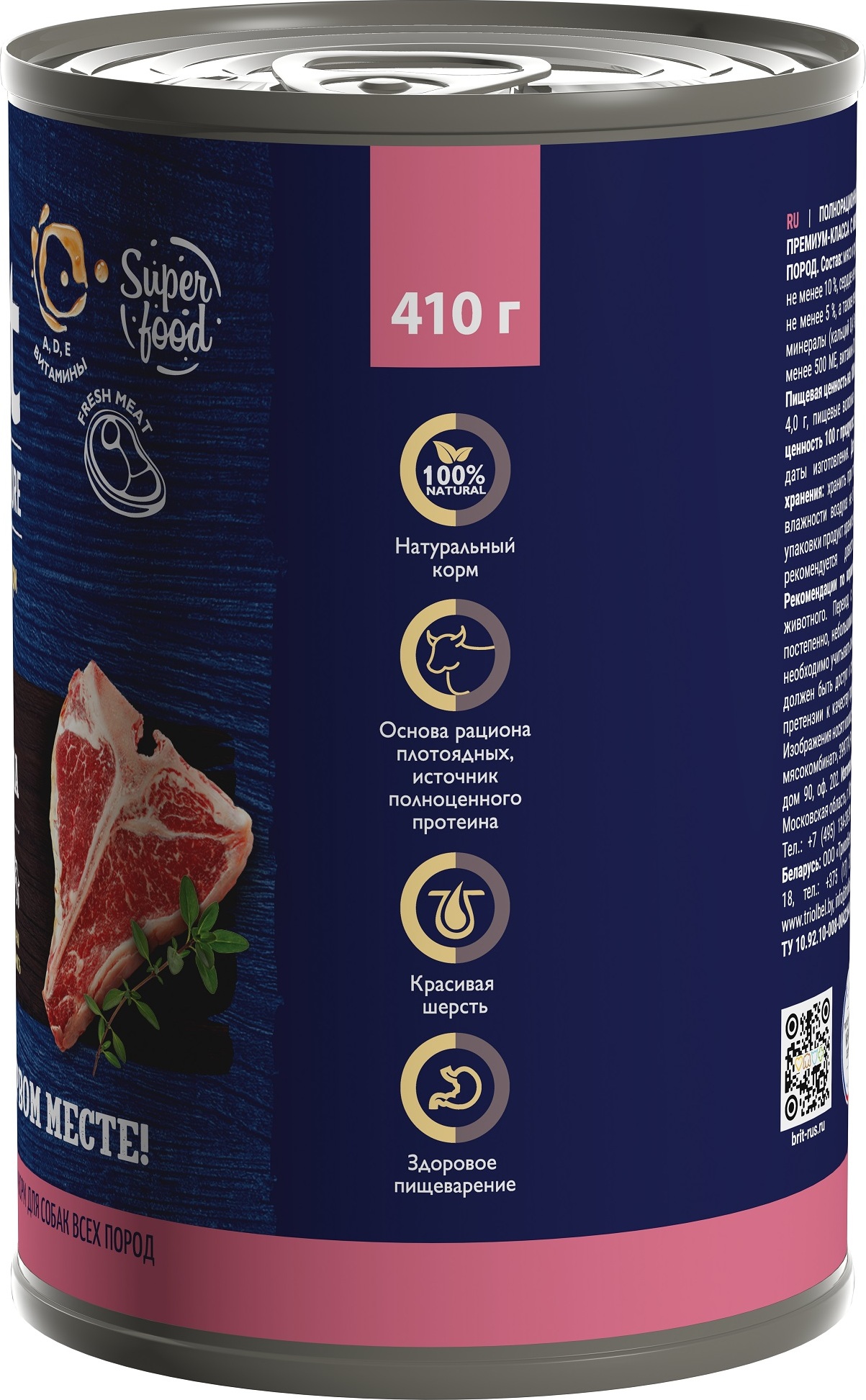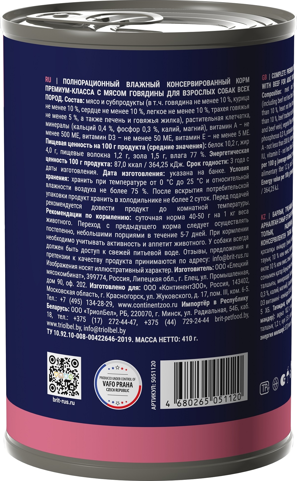 Консервы для собак Brit Premium by Nature, с говядиной, 410 г х 9 шт