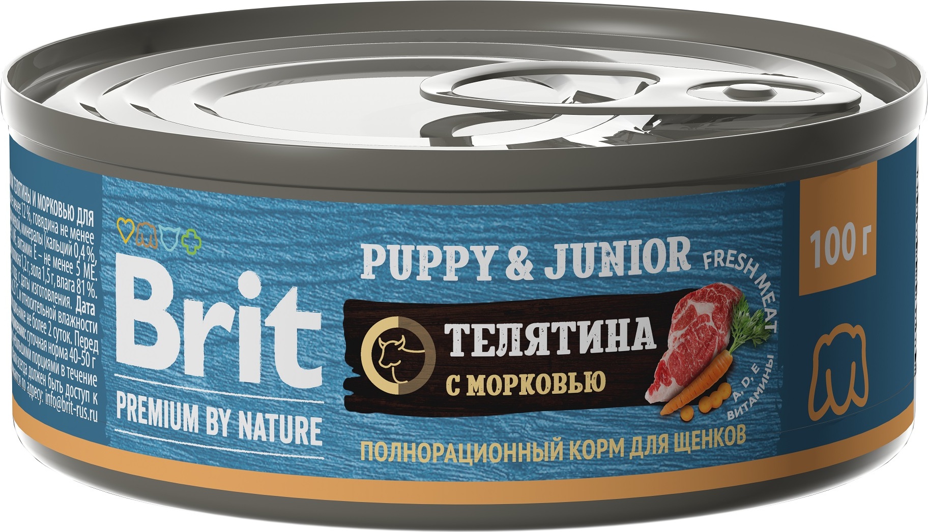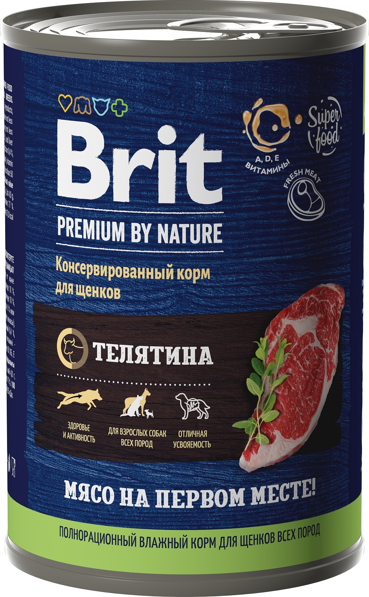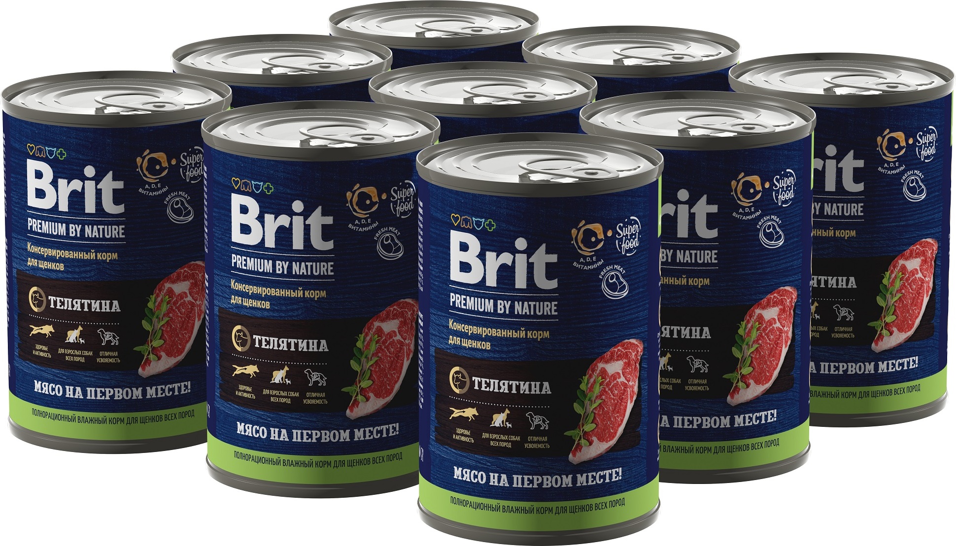 Консервы для щенков Brit Premium by Nature, консервы с телятиной, 410 г х 9 шт