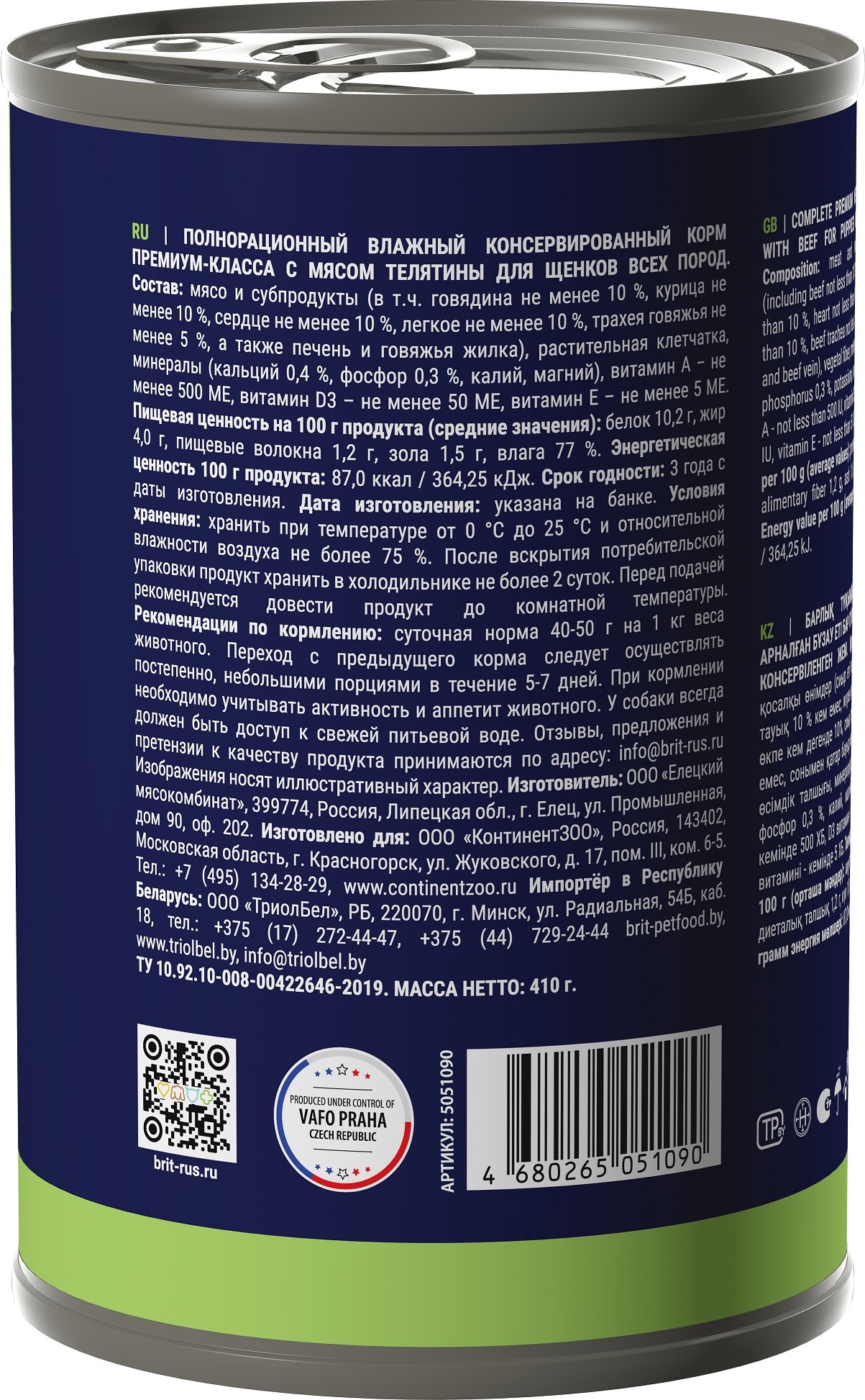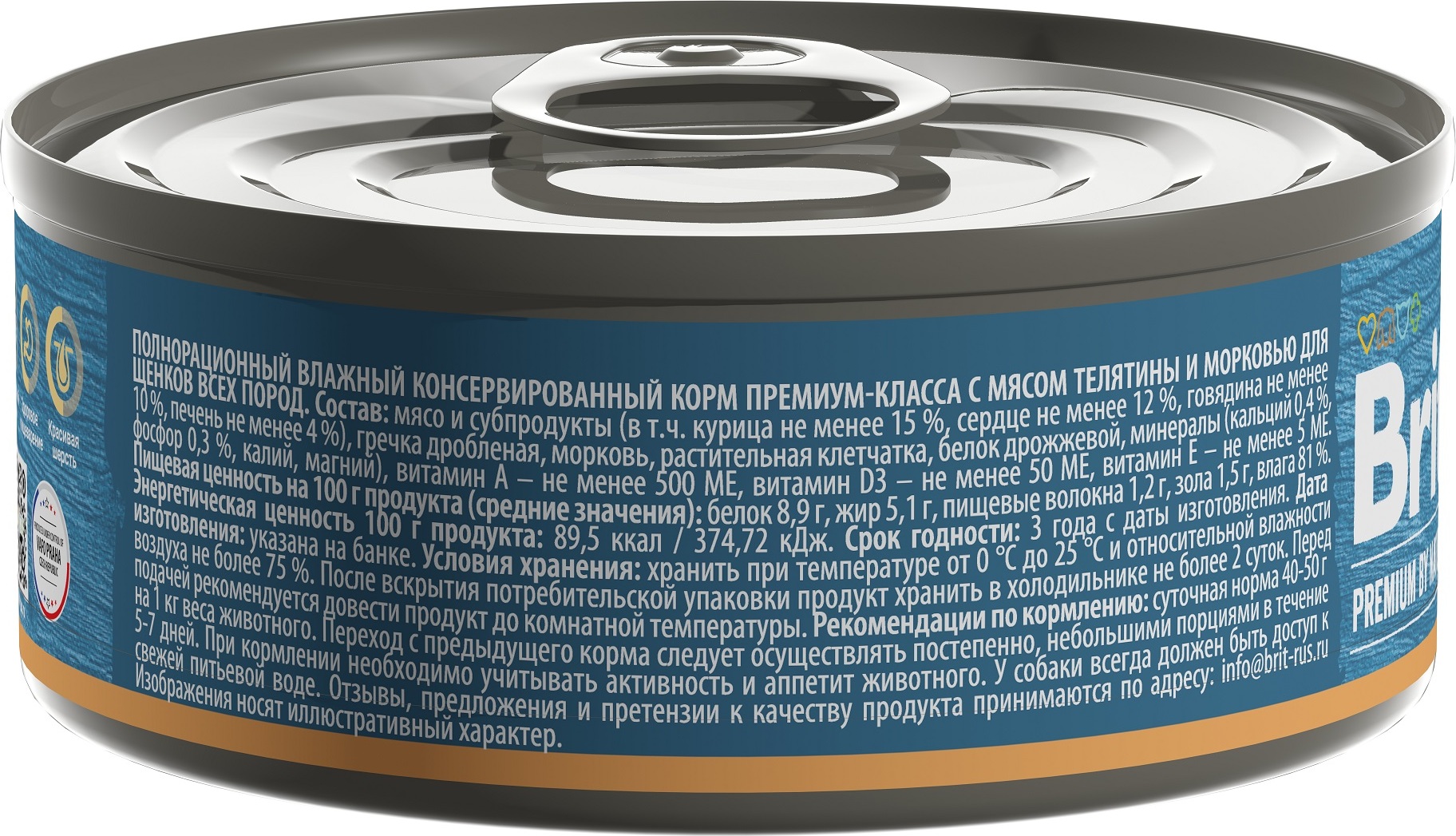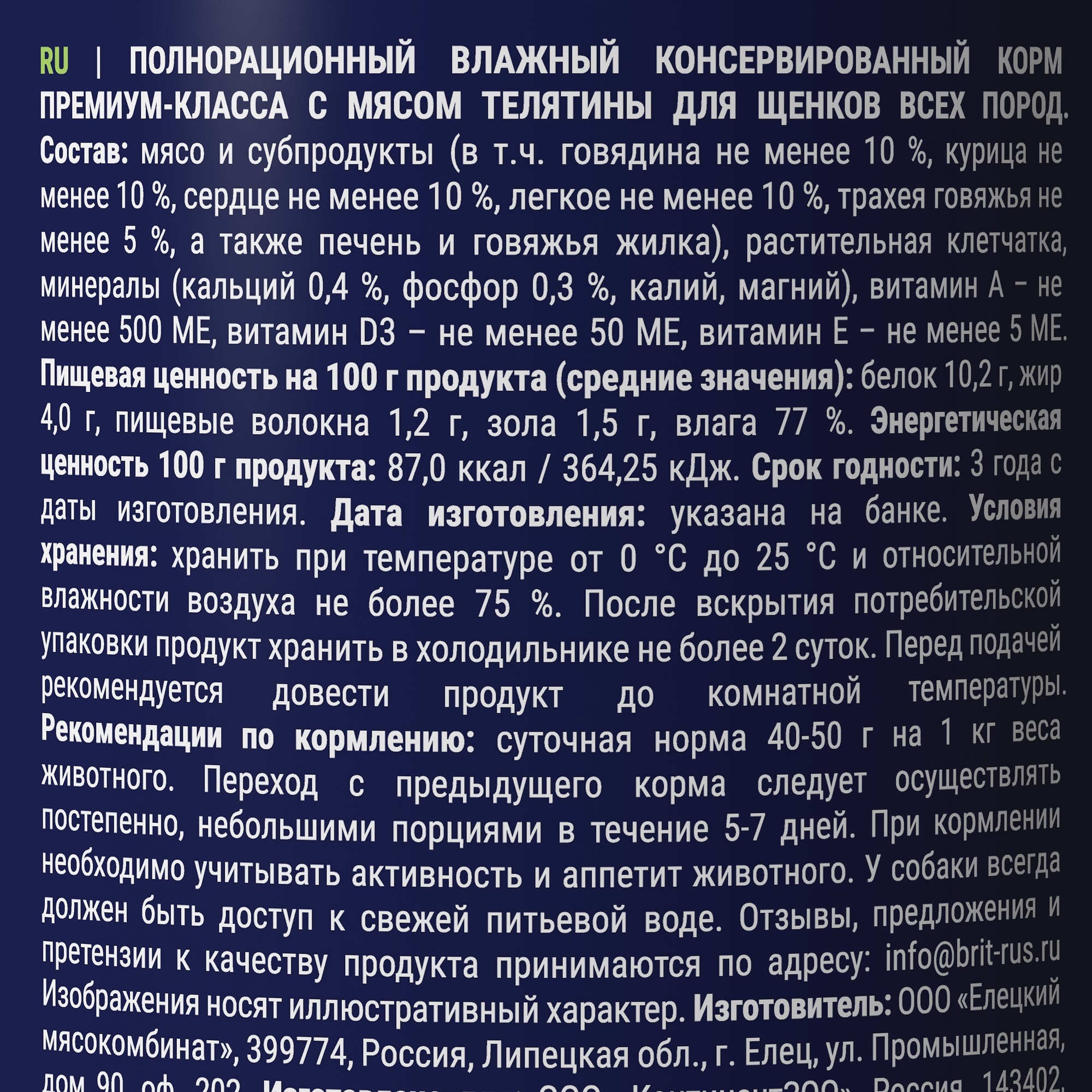 Консервы для щенков Brit Premium by Nature, консервы с телятиной, 410 г х 9 шт