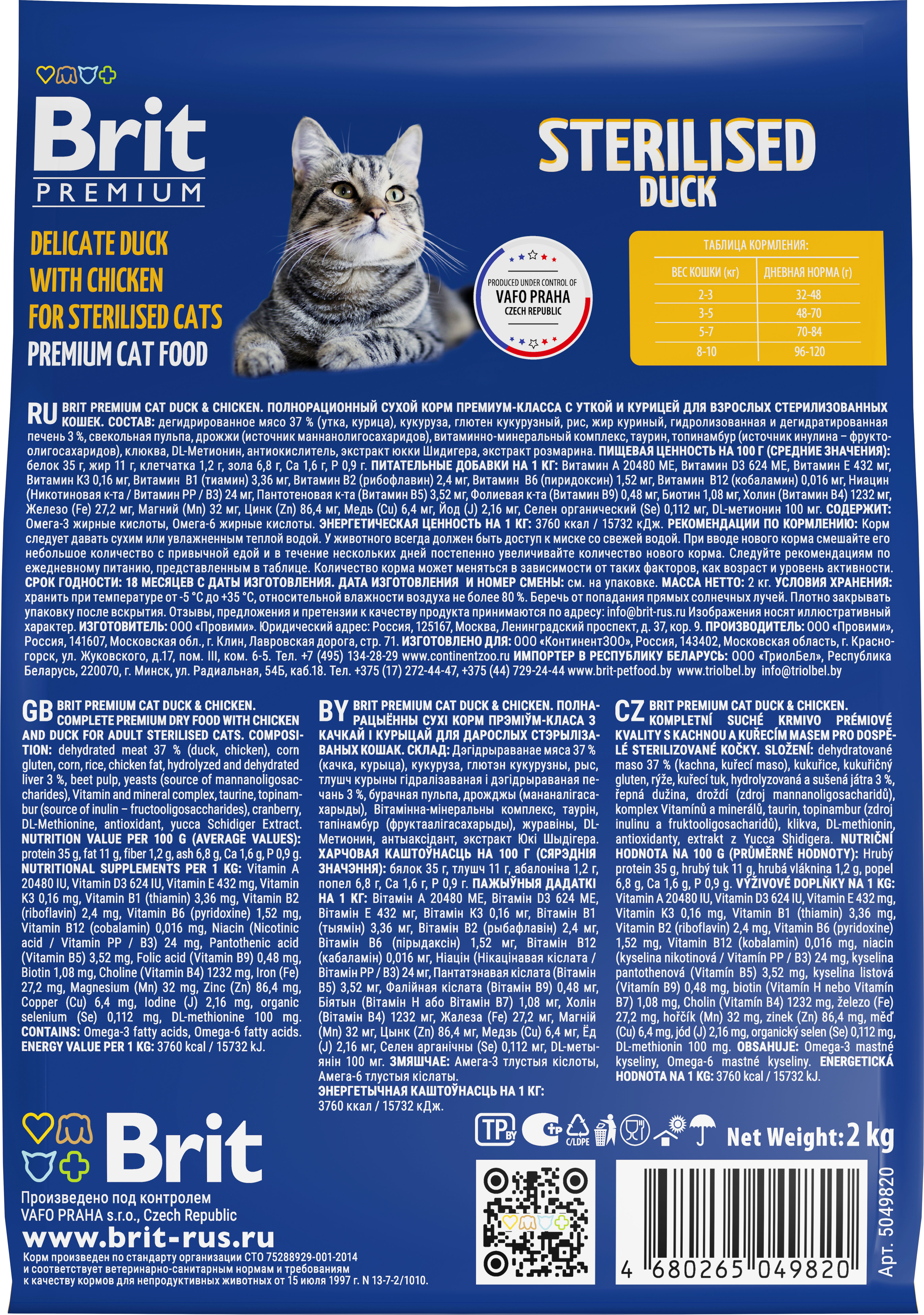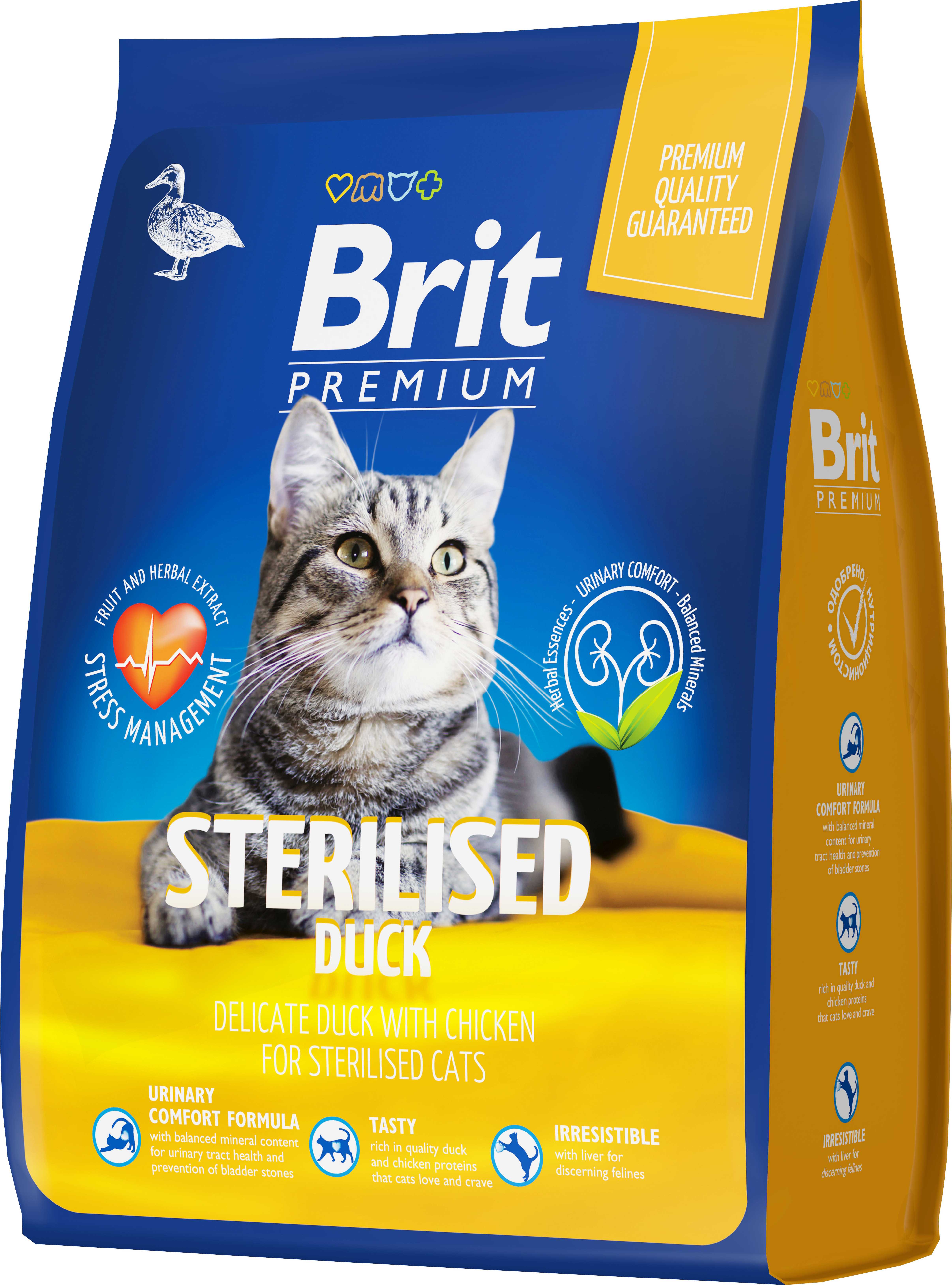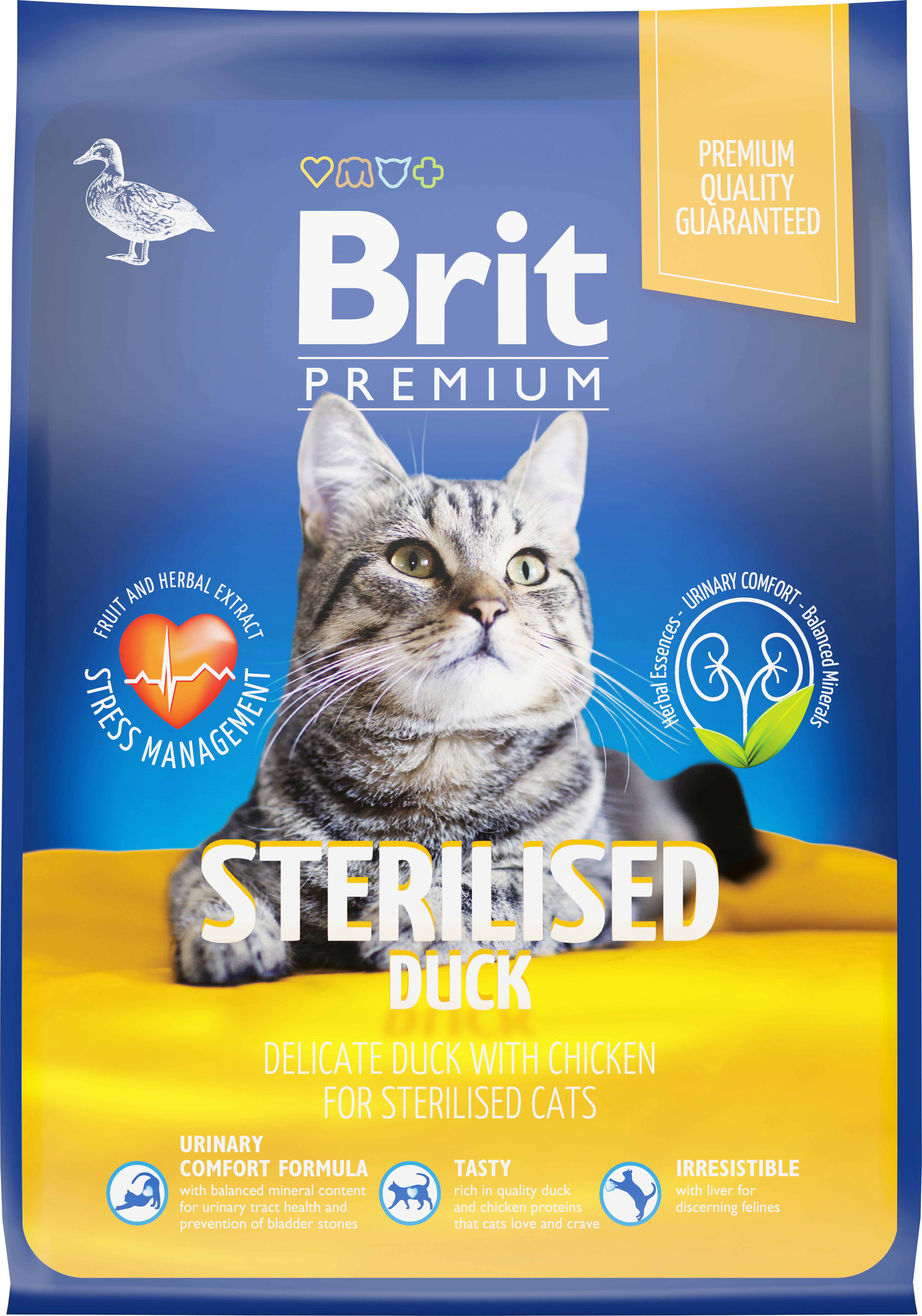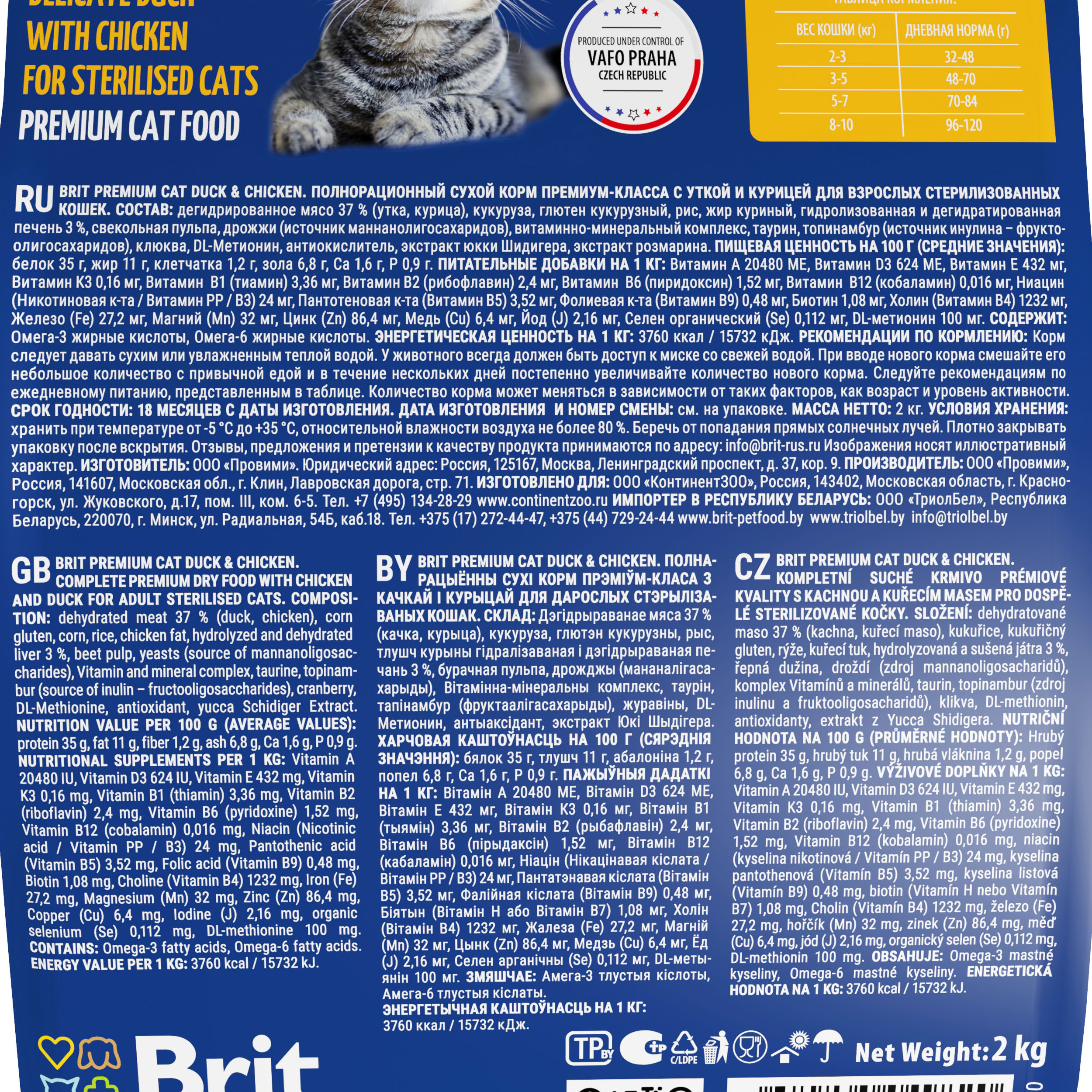 Сухой корм для стерилизованных кошек Brit Premium Cat Duck & Chicken с уткой и курицей, 2 кг