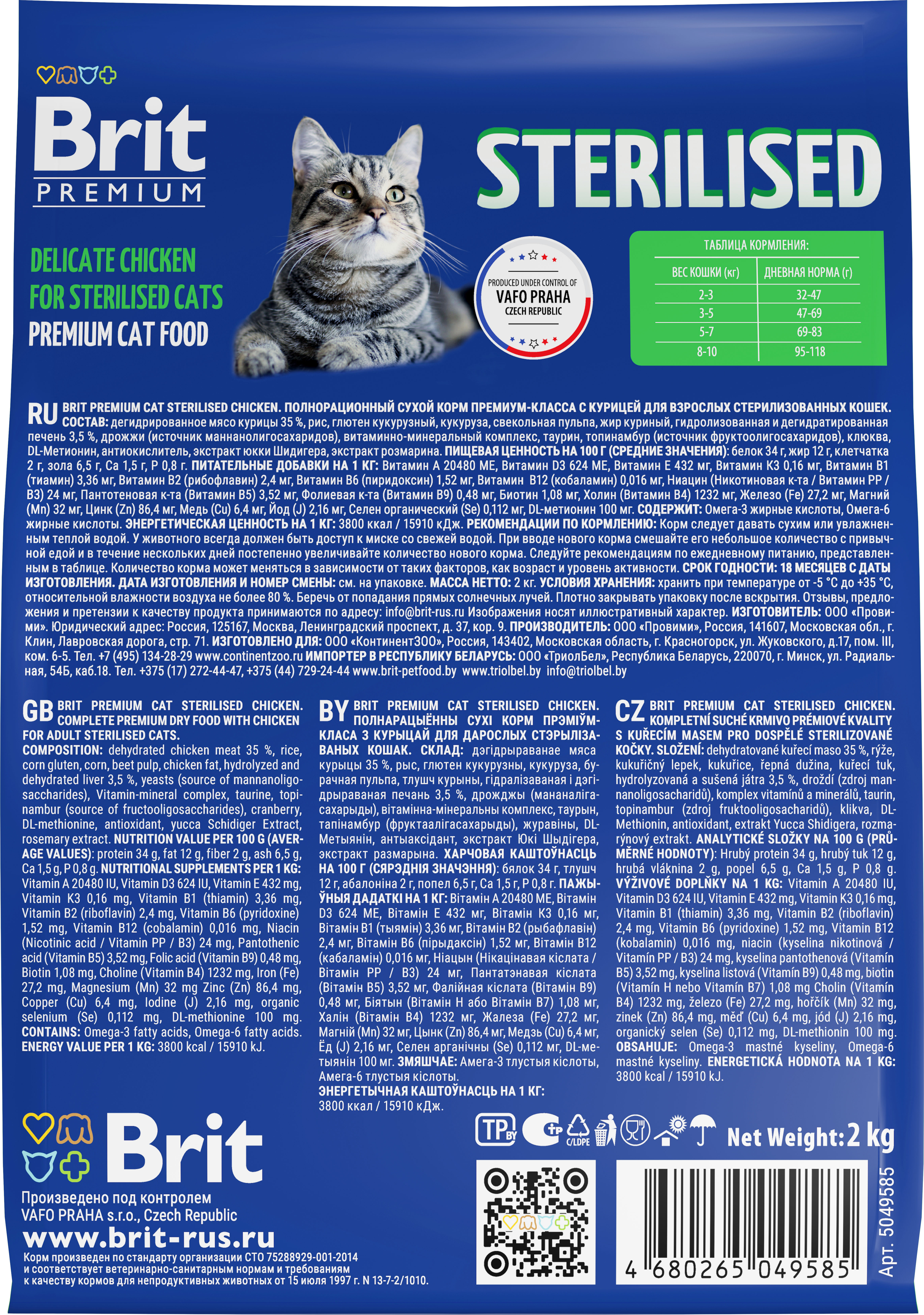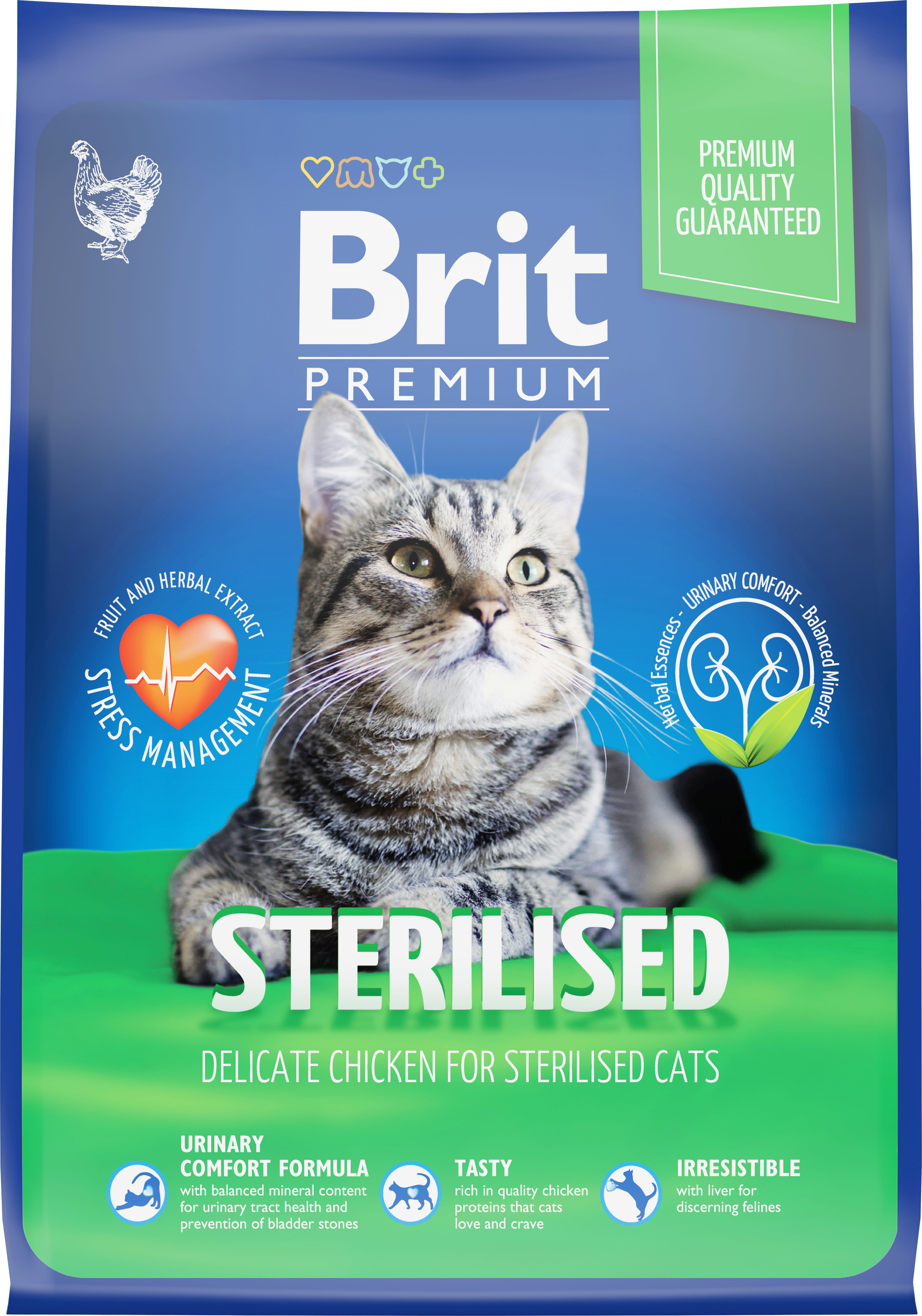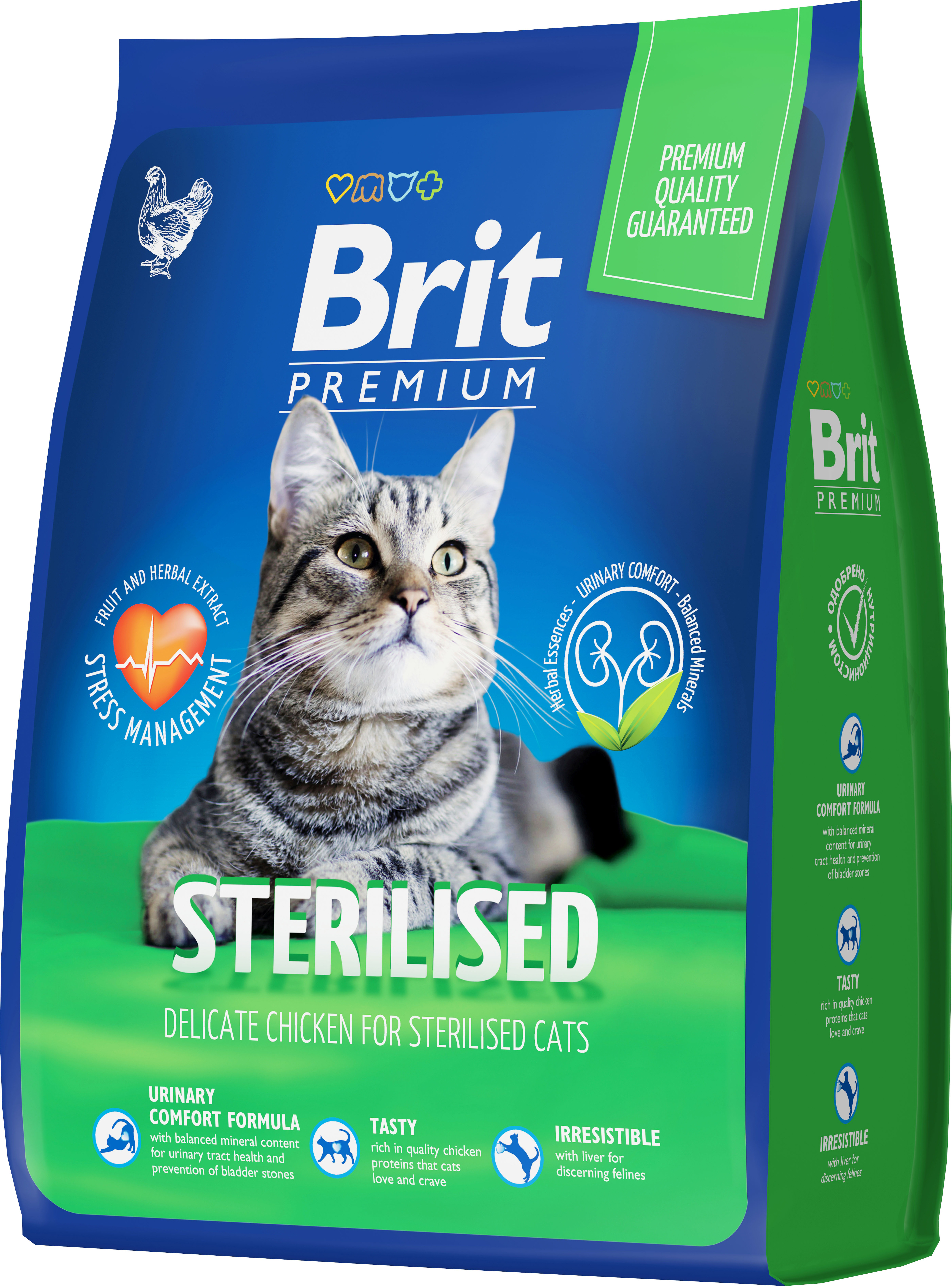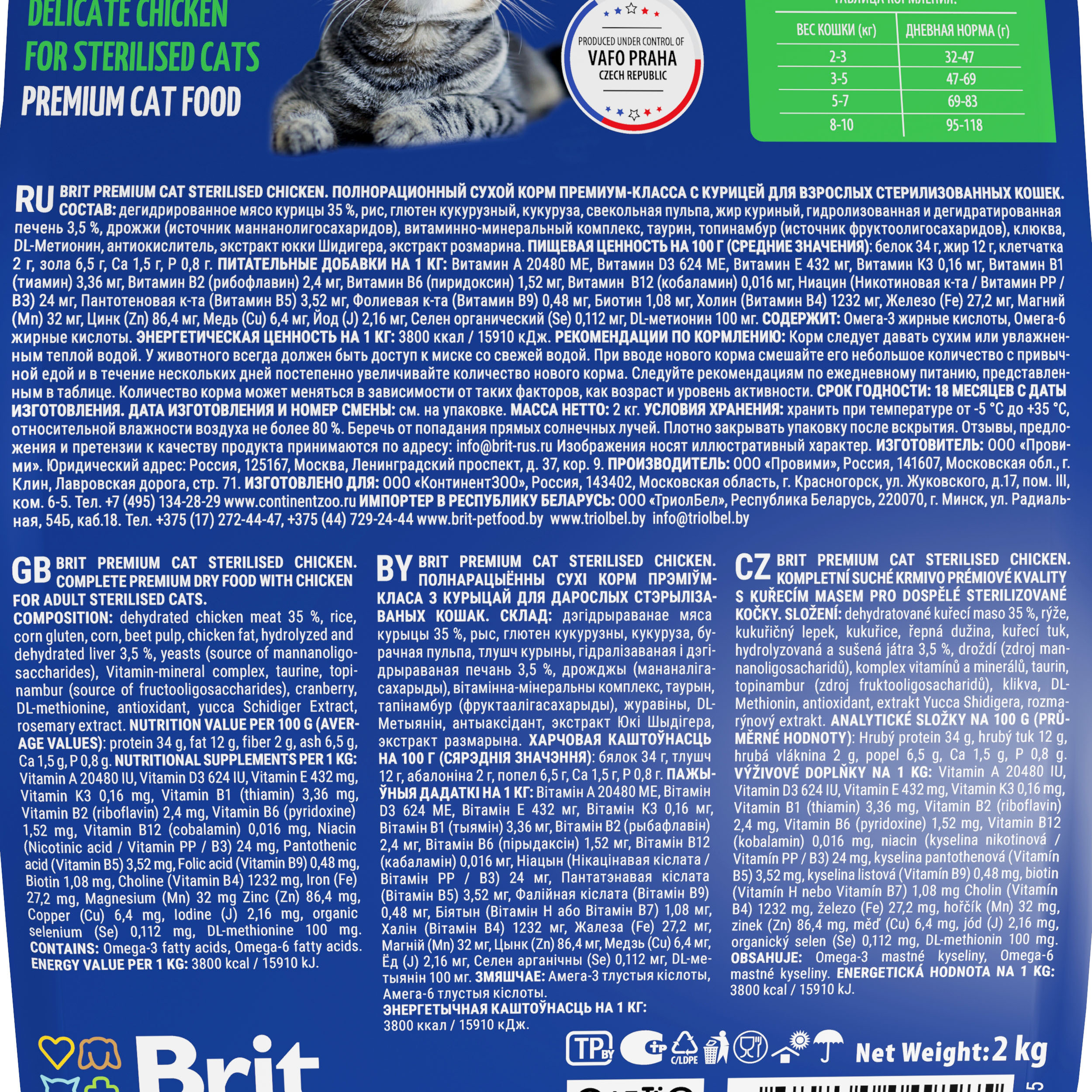 Сухой корм для стерилизованных кошек Brit Premium Cat Sterilized Chicken с курицей, 2 кг