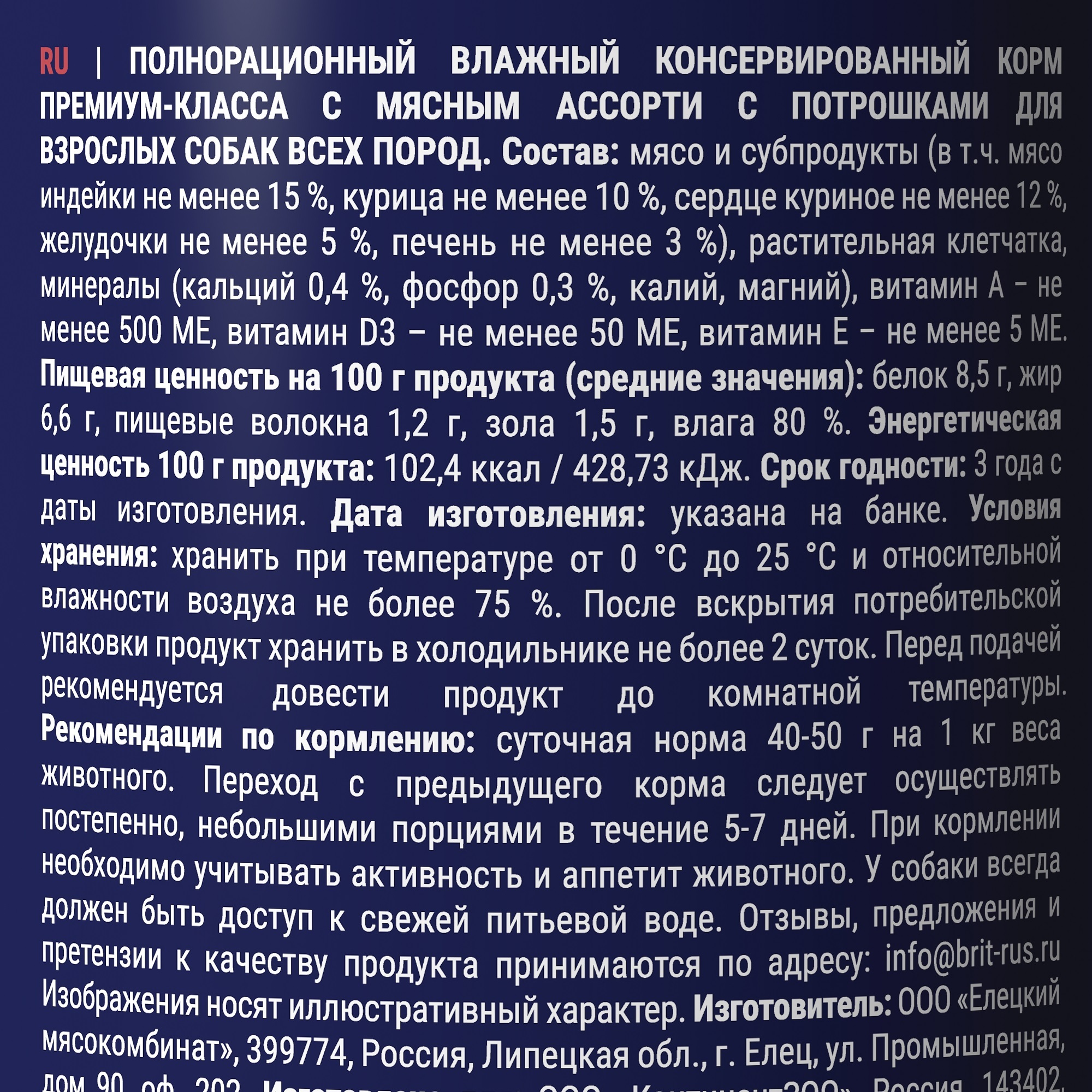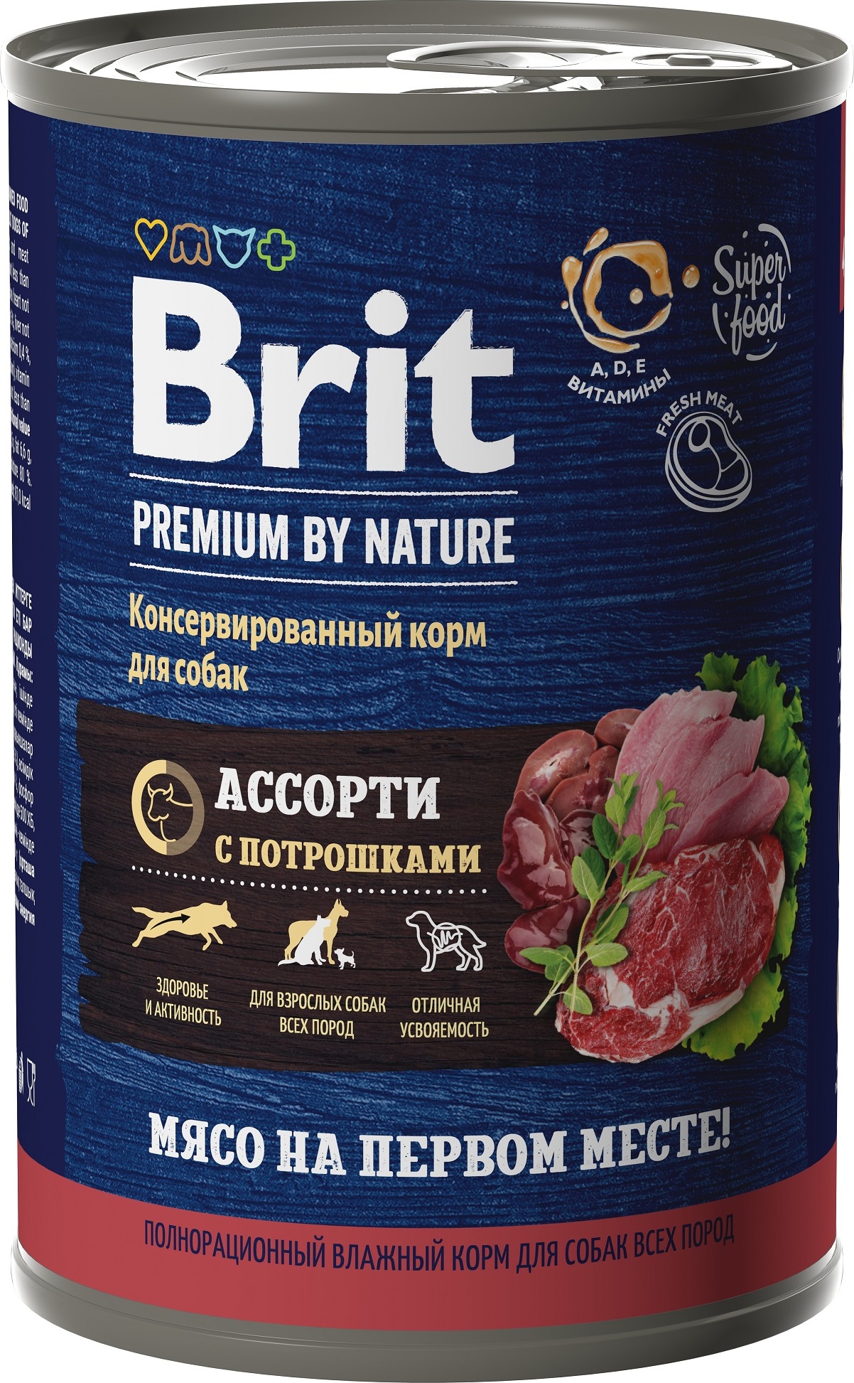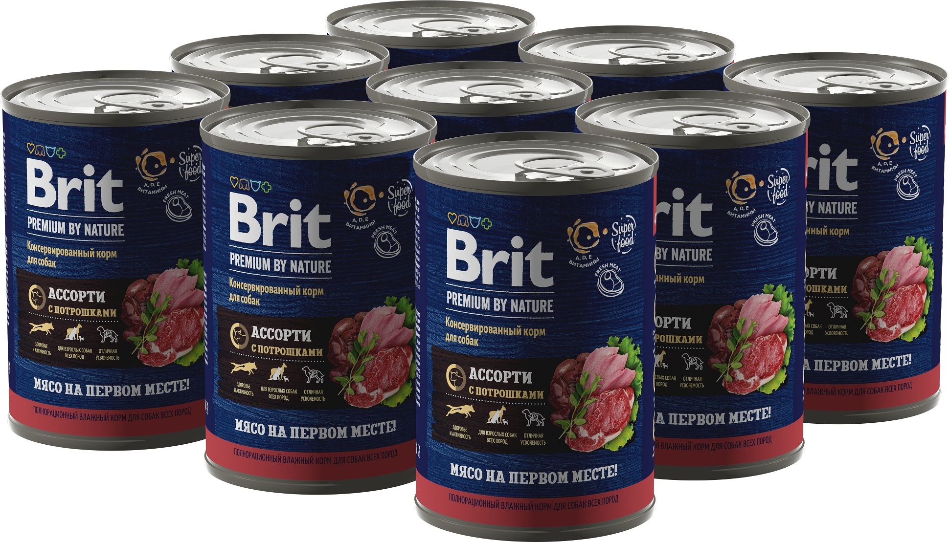 Консервы для собак Brit Premium by Nature, с мясным ассорти с потрошками, 410 г х 9 шт