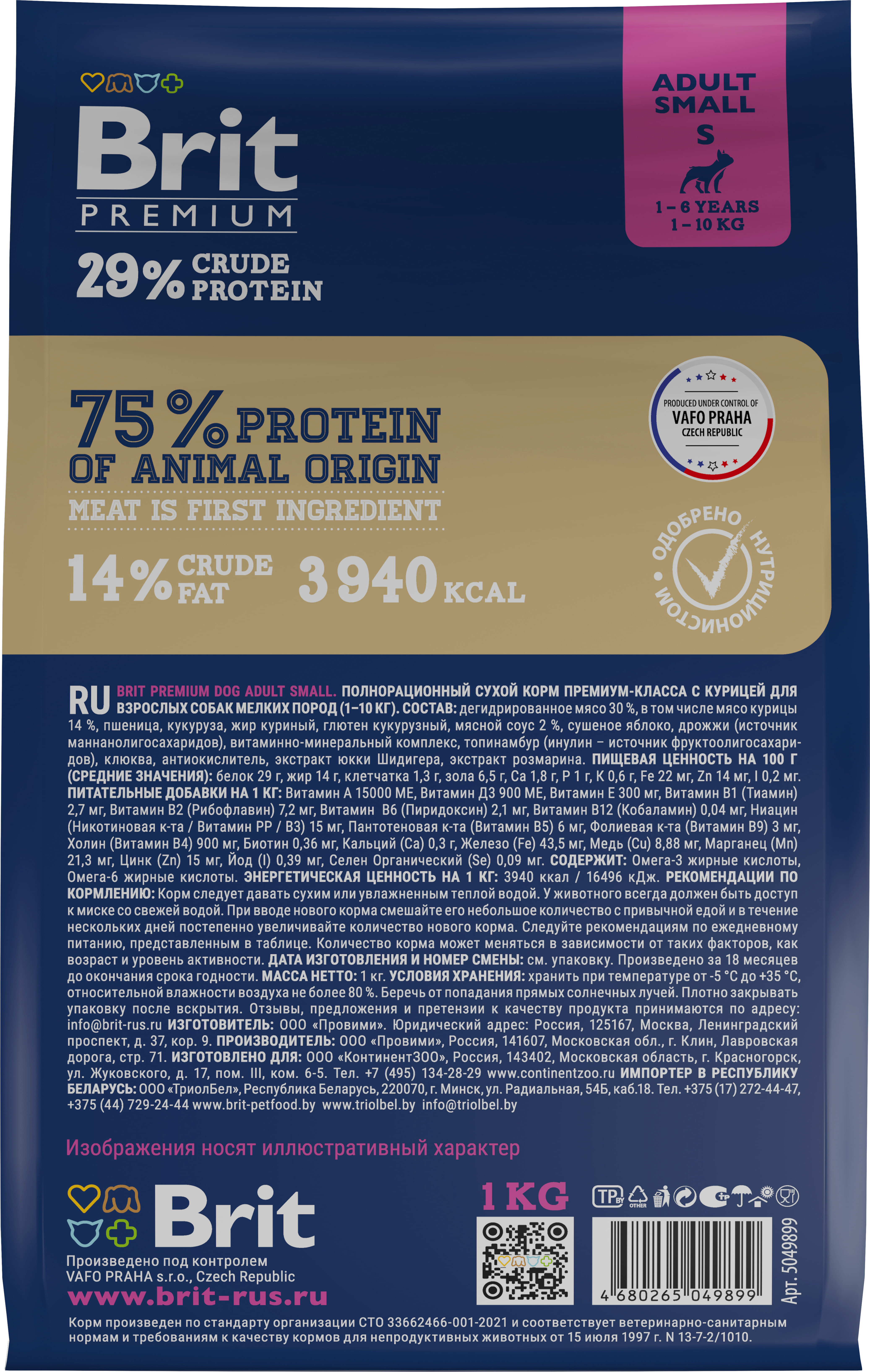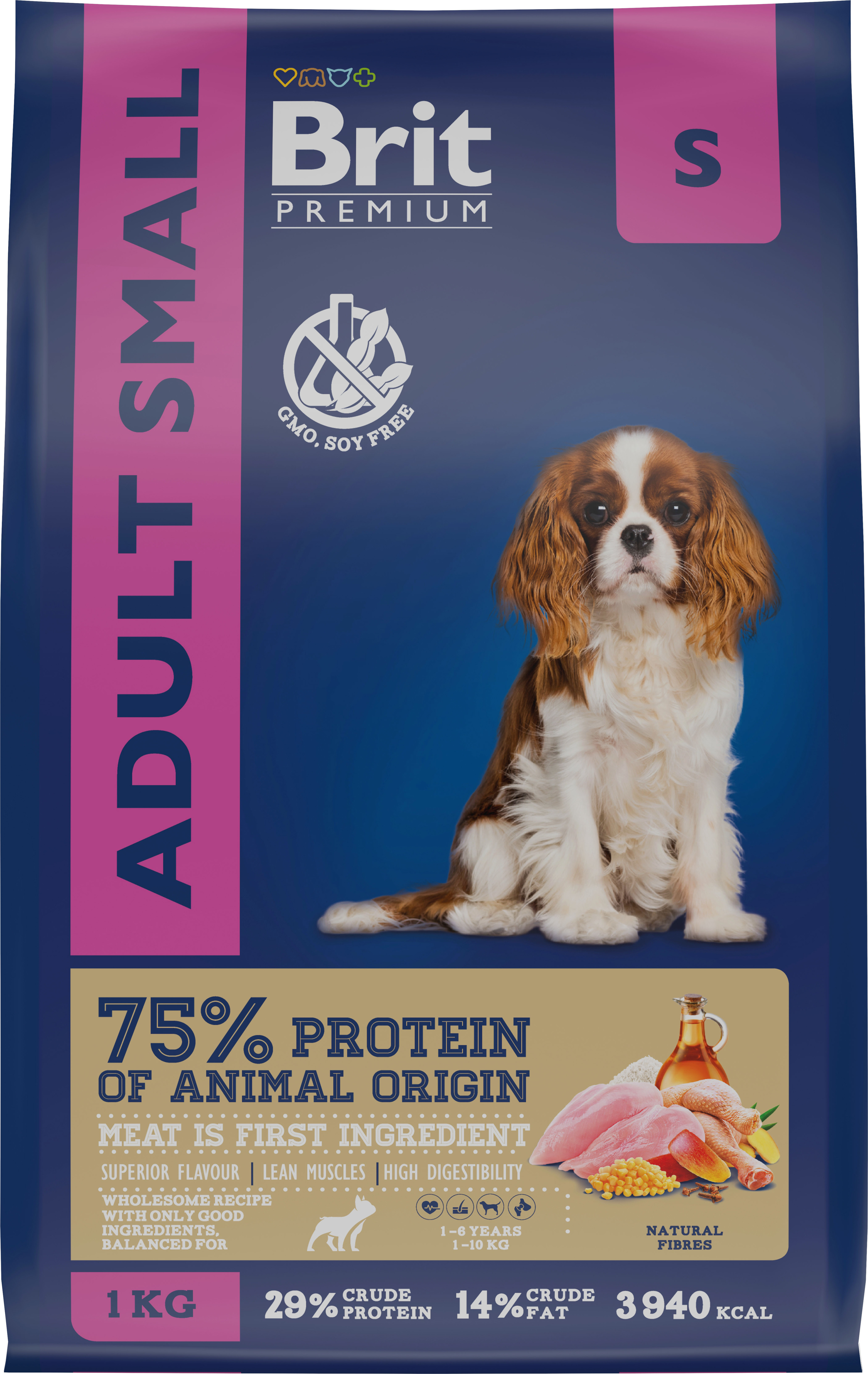 Сухой корм для собак маленьких пород Brit Premium Dog Adult Small, курица, 1 кг