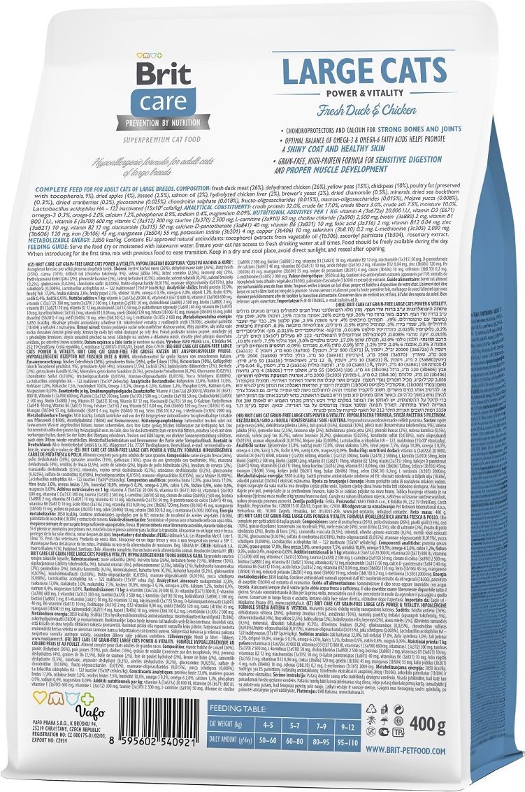 Корм сухой Brit Care Cat GF Large cats Power & Vitality для взрослых кошек крупных пород, 400 г