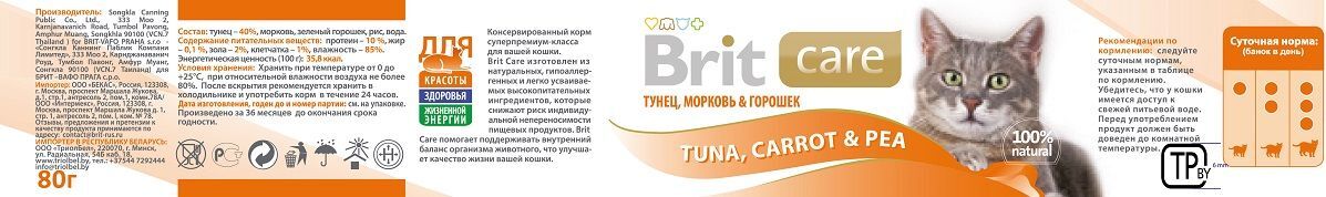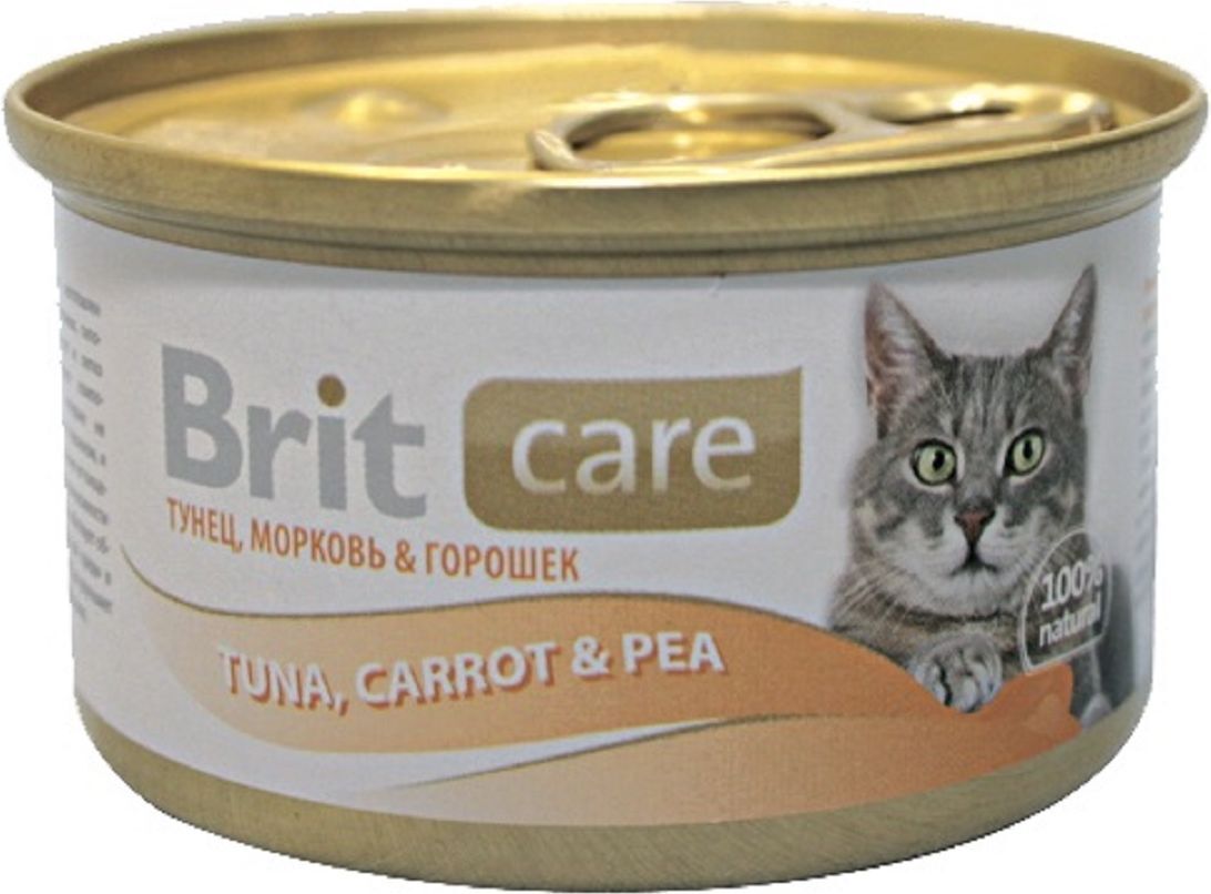 Влажный корм Brit Care Тунец, морковь и горошек для кошек, 80 г