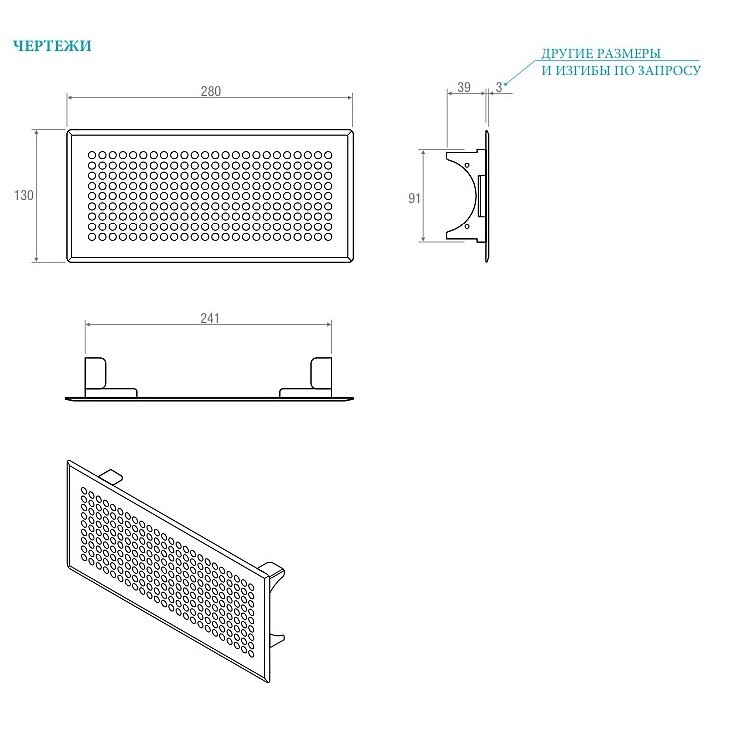 Итальянская дизайнерская стальная решетка AURORA, 250x100мм, белый глянец ,BROFER