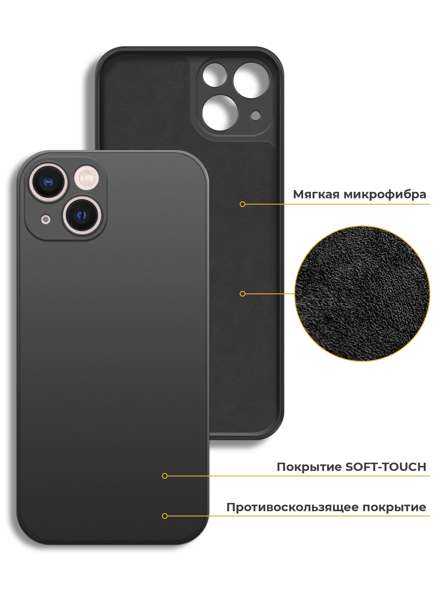 Чехол на Apple iPhone 13 mini силиконовый с защитной подкладкой, черный, Brozo. Уцененный товар