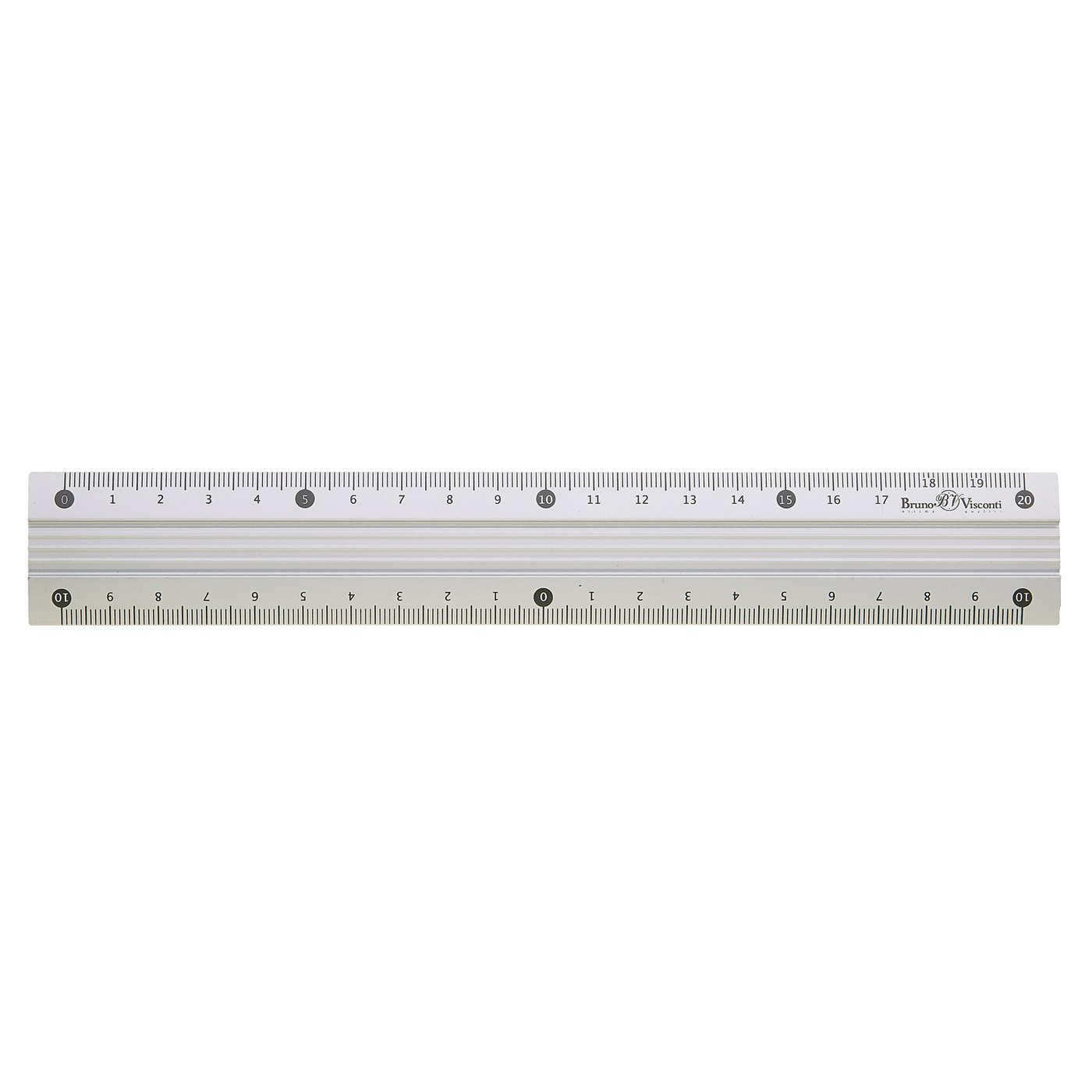 Линейка BrunoVisconti металлическая рифленая "Profy", 20 см, серый металлик