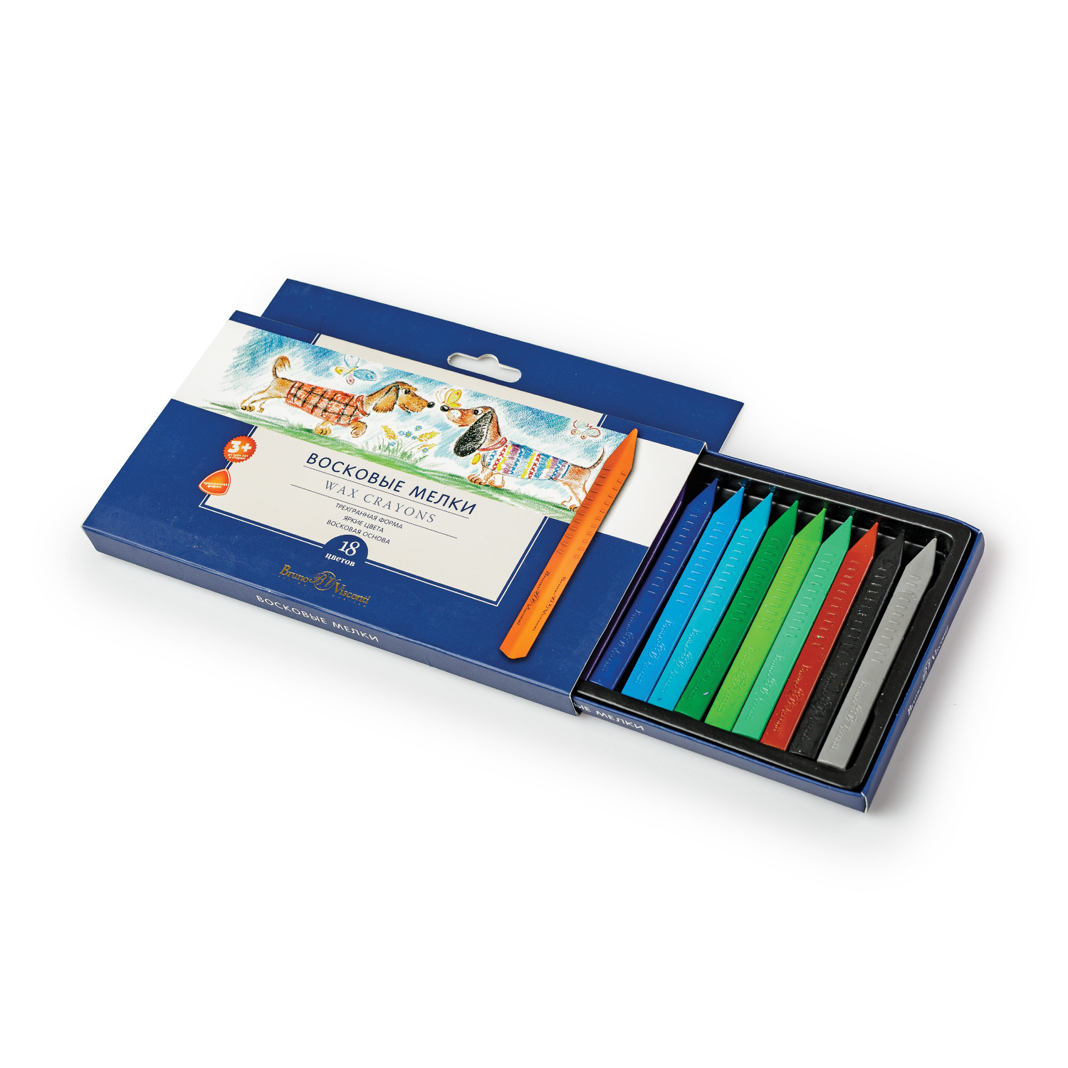 Мелки BrunoVisconti восковые, 18 цв, коробка-пенал с пластиковым ложементом MultiColor Арт. 31-0010