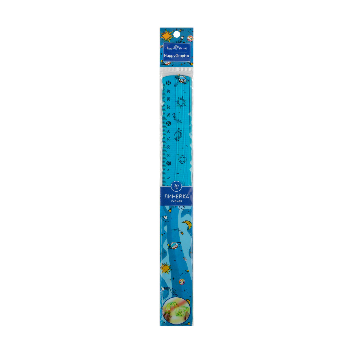 Линейка Bruno Visconti "HappyGraphix" неломающаяся гибкая 30 см, цвет синий, Арт. 45-0009