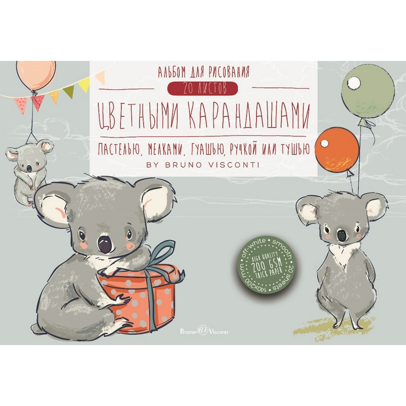 Бумага д/рисов.цв.карандашами 20л А5,200х140,склейка,200гр,ассорт 4 штук