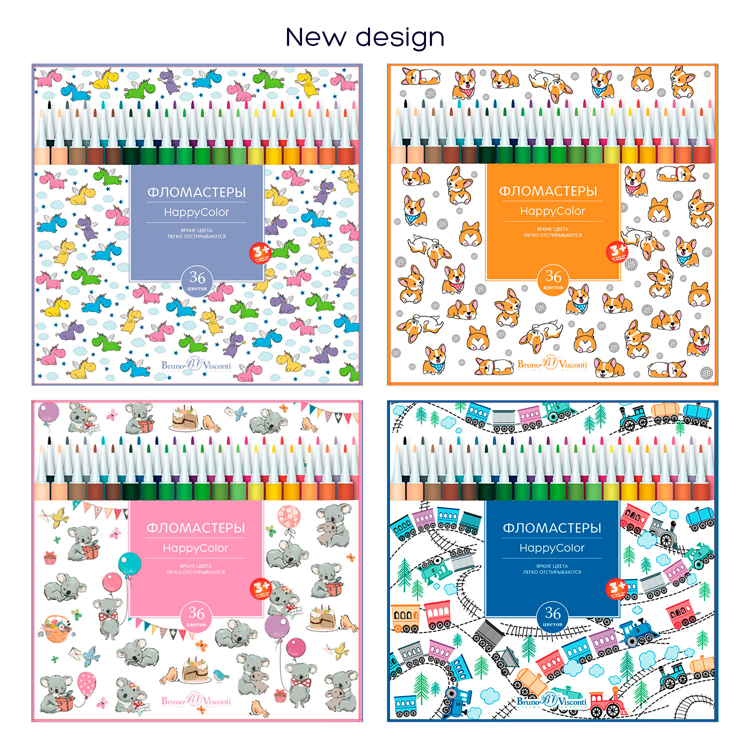 Фломастеры Bruno Visconti 36 цвета, 4 вида HappyColor Арт. 32-0053