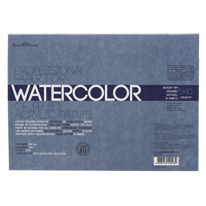 Бумага Bruno Visconti для акварели, акрила А4 (297х210 мм), 10 л., Арт. 4-112