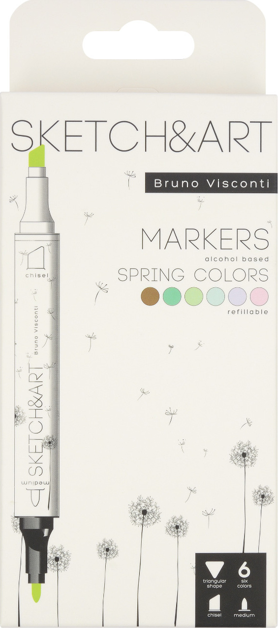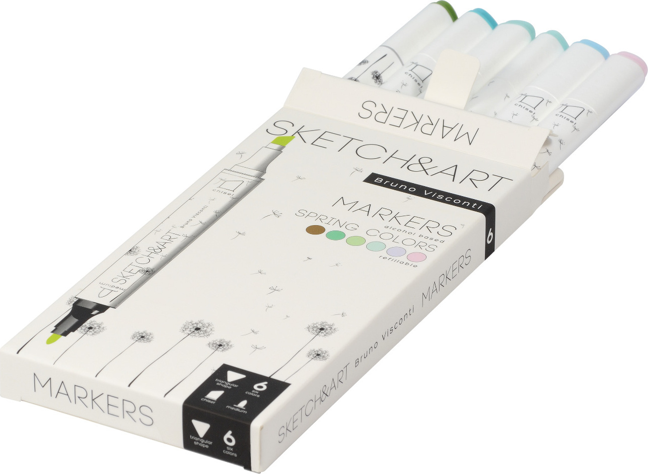Набор скетчмаркеров Bruno Visconti "Sketch and Art. Весенний пейзаж" 6цв., двухс., сп.осн., пл.пенал