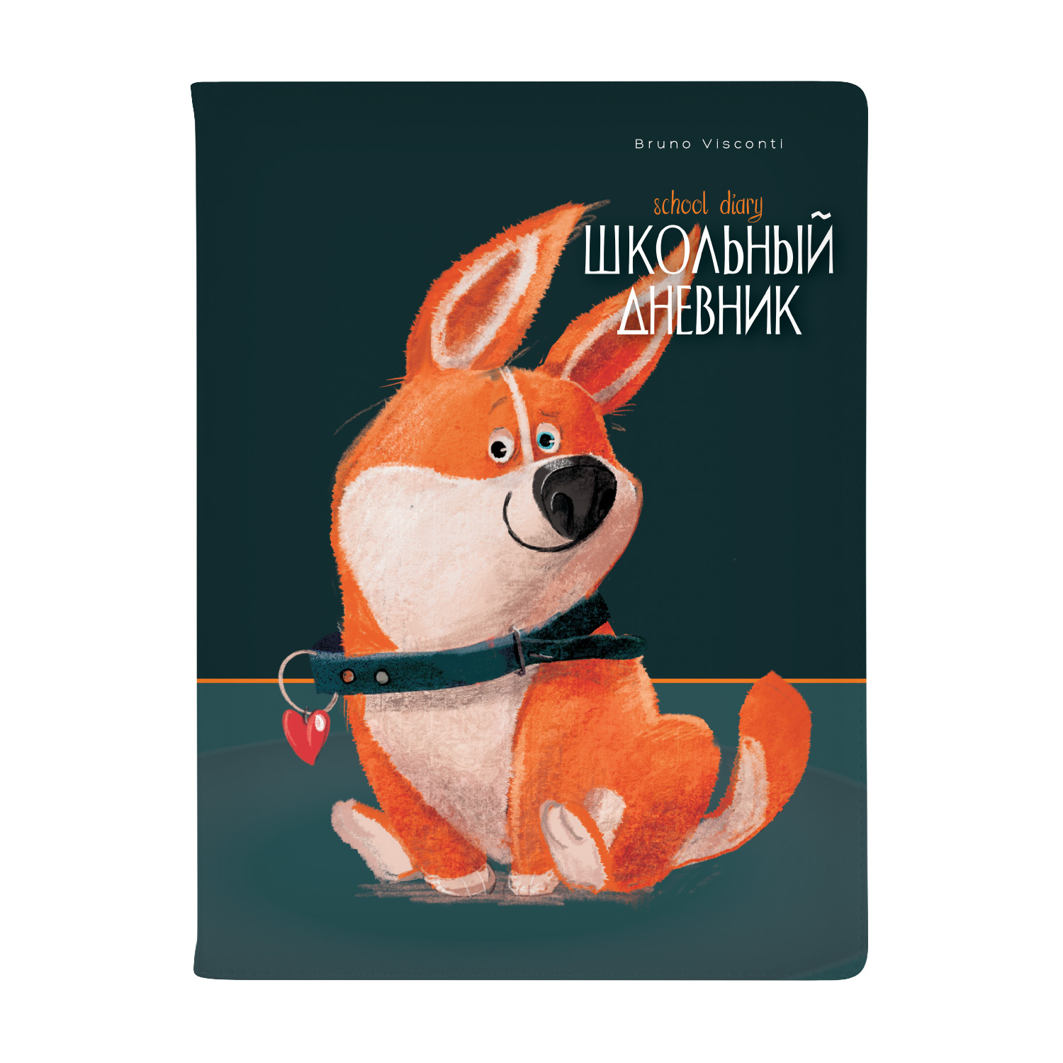 Дневник универсальный для 1-11 классов Забавный корги, искусственная кожа, белый блок, 48 листов
