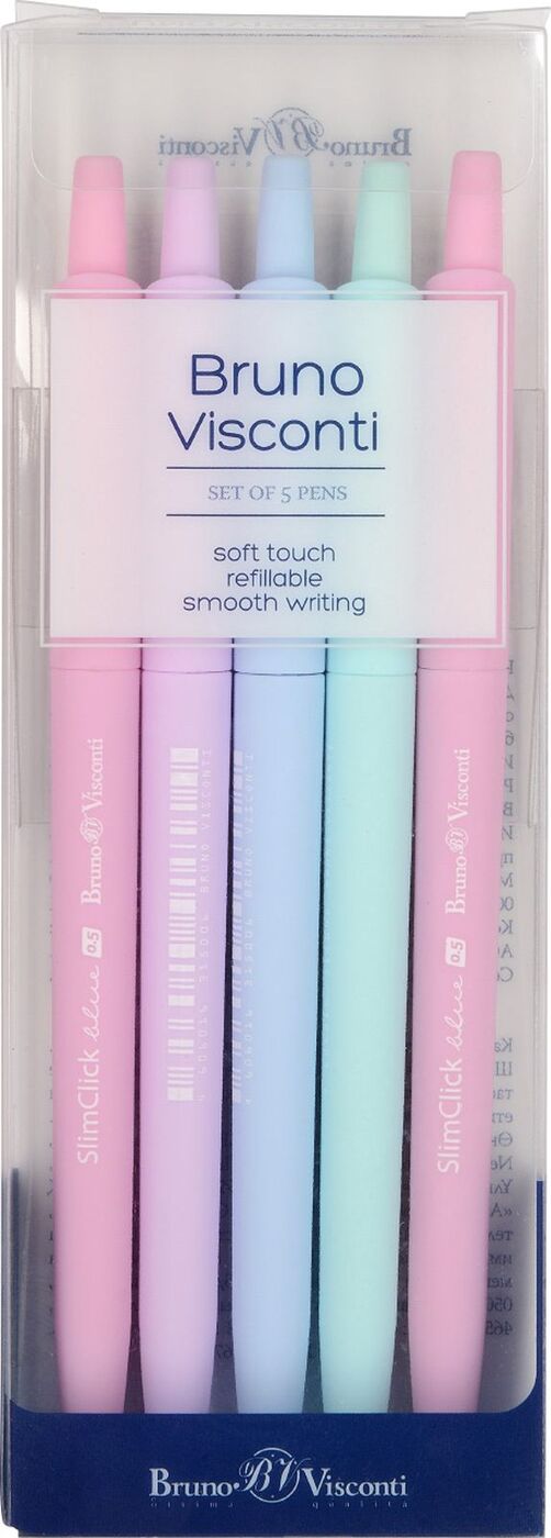 Набор ручек BrunoVisconti "Slimclick.Zefir", шариковая, 0,5 мм, синий