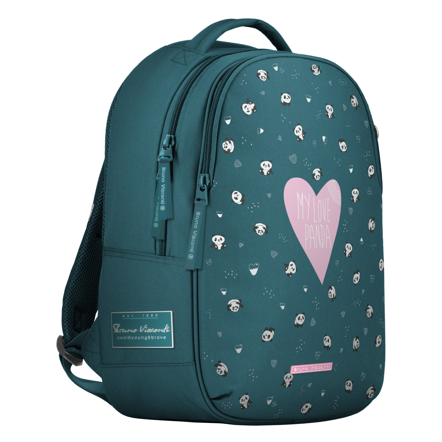Рюкзак школьный детский Bruno Visconti суперлегкий бирюзовый с эргономичной спинкой MY LOVE PANDA