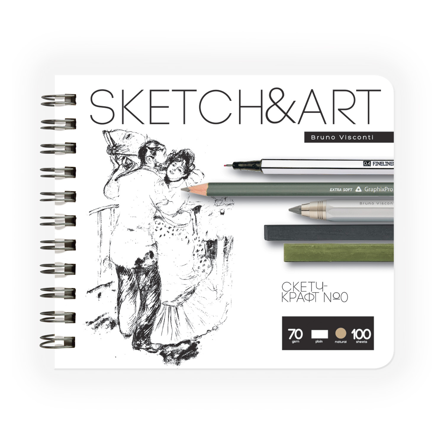 Скетчбук крафт BrunoVisconti 180х155 мм 100 листов, 70 г/м2, на гребне