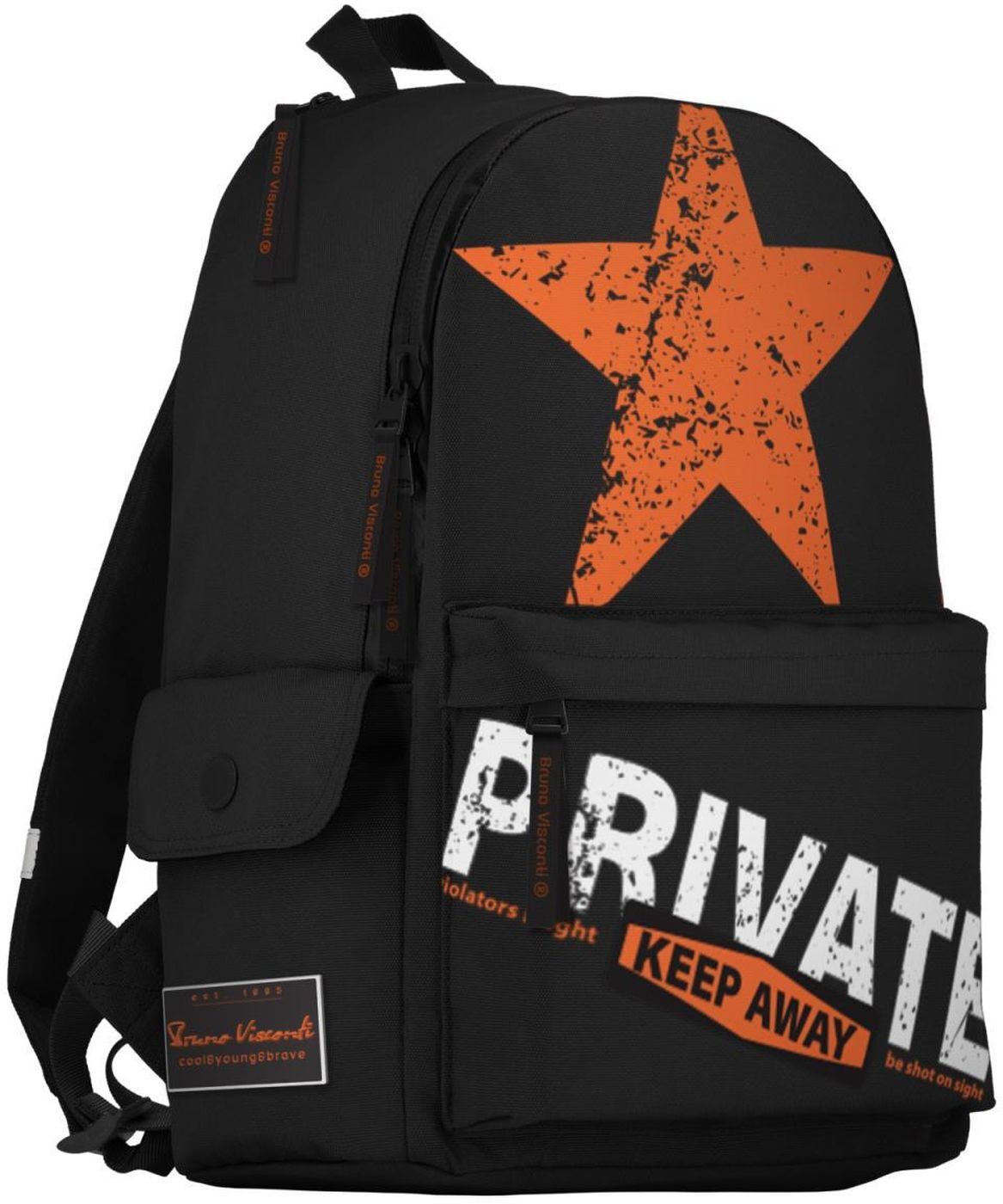 Рюкзак BrunoVisconti молодежный черный "KEEP AWAY.PRIVATE" Арт. 12-003-149/01