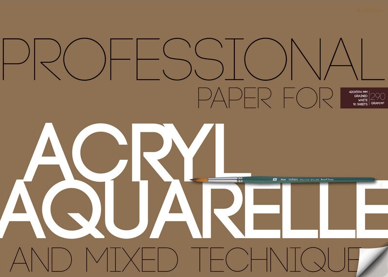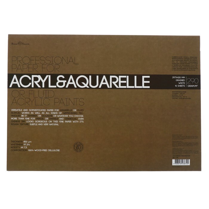 Бумага для акварели, акрила А3, 10 листов, блок 290 г/м2