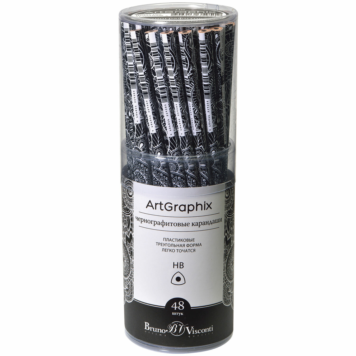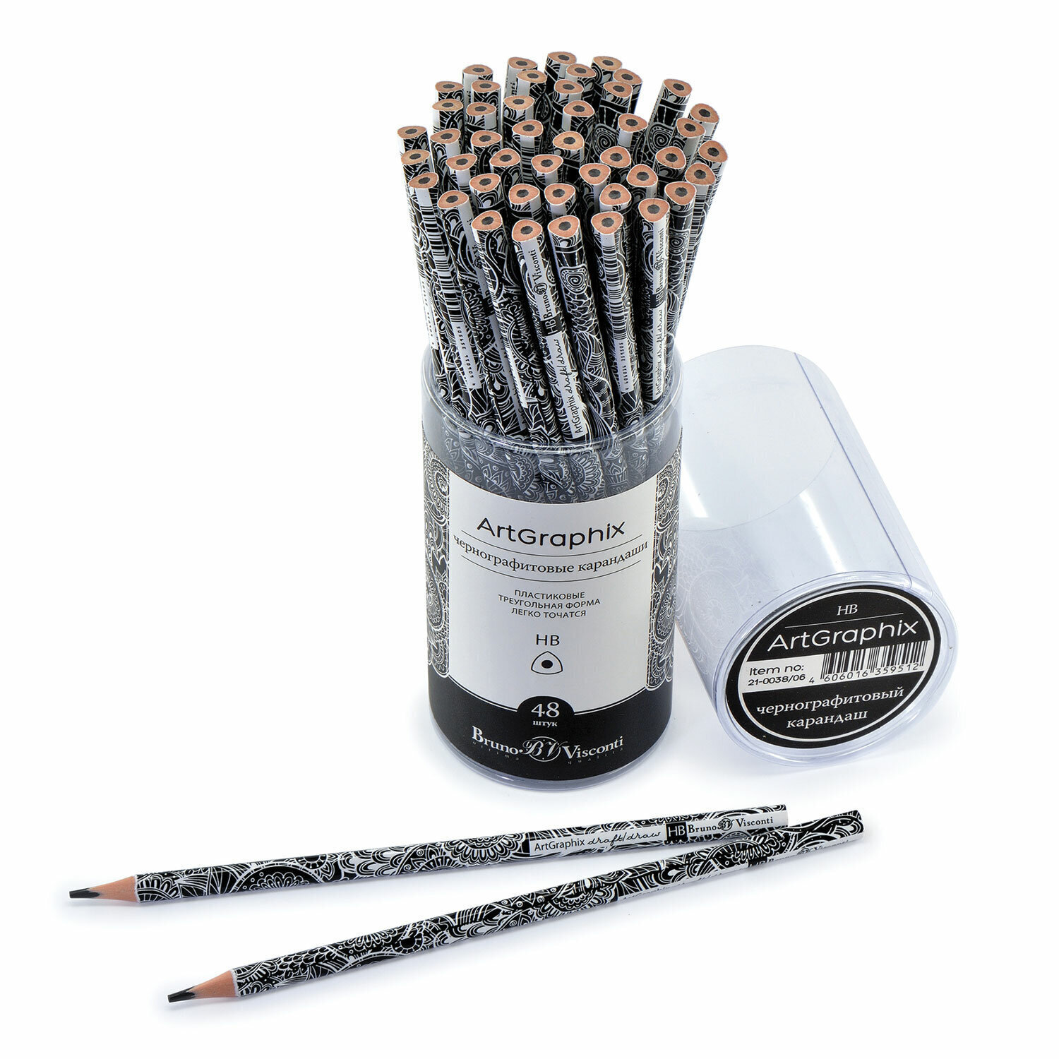 Карандаш чернографитный BRUNO VISCONTI "ArtGraphix", 48 шт., "Тату", HB, пластиковый, 21-0038/06