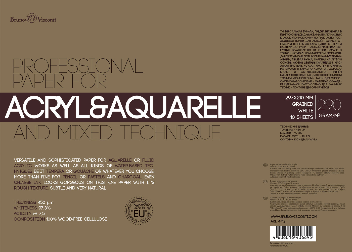 Бумага для рисунка и графики А2,10л,блок 160гр, в папке 4-129