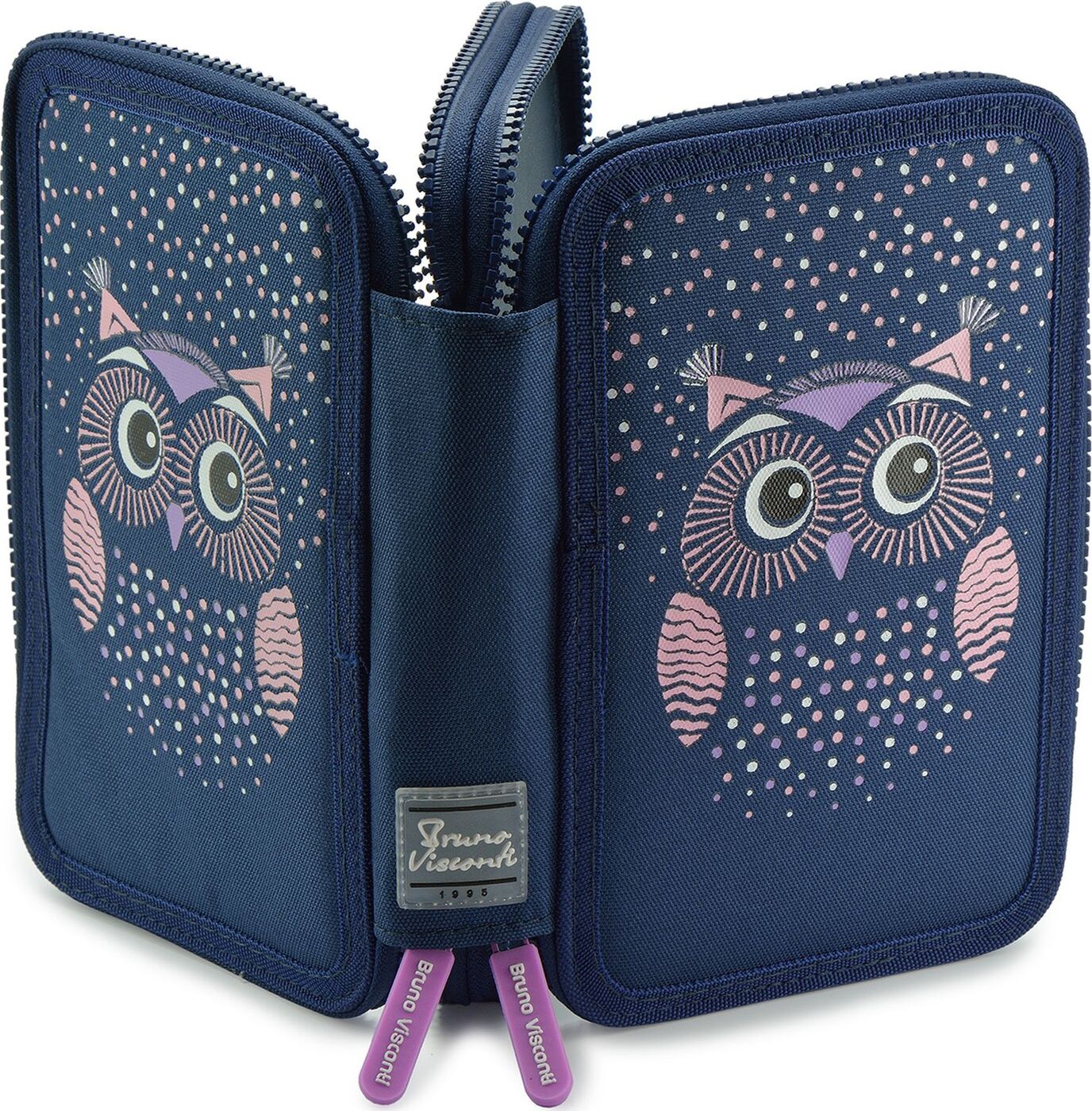 Пенал Bruno Visconti Совенок, две секции, 14-051/02, синий, 20 х 12 см