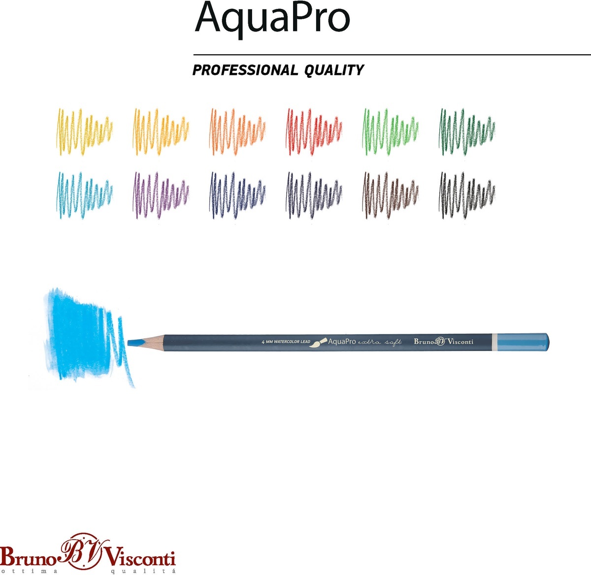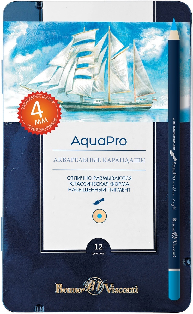 Набор акварельных карандашей Bruno Visconti AquaPro, 12 цветов, в металлической коробке