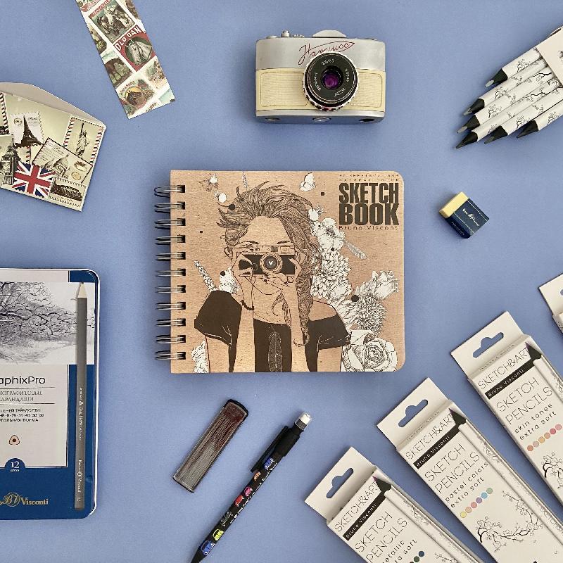 Скетчбук для рисования Bruno Visconti 200х205 мм, 80л Крафтовый блокнот для творчества